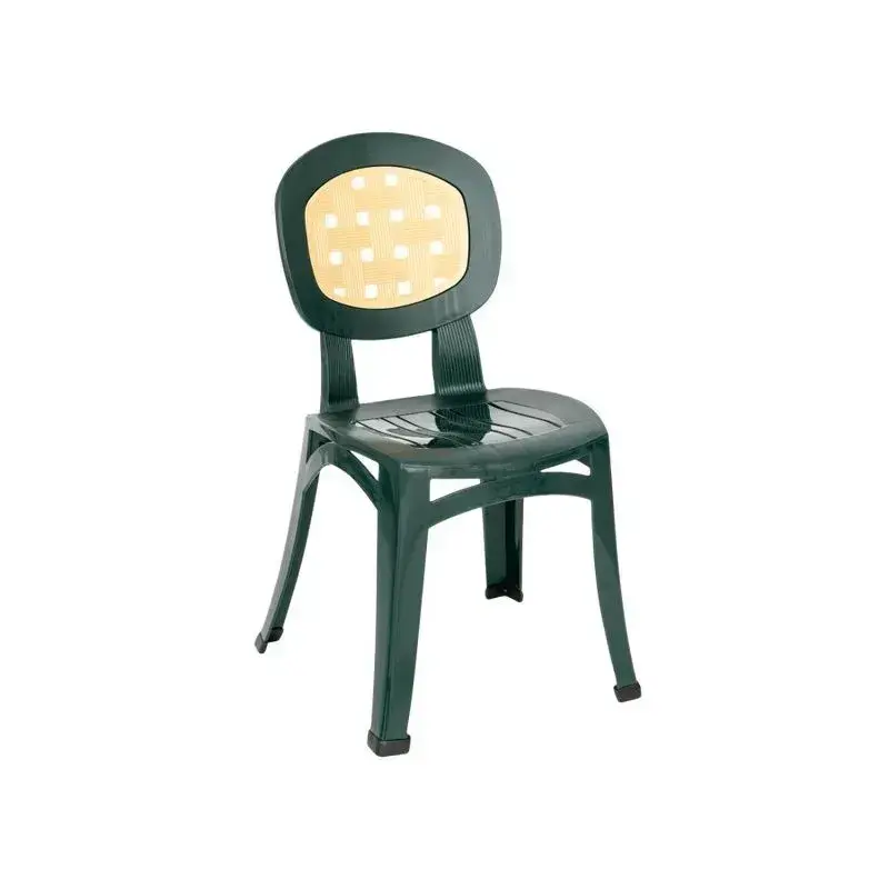Стул пластиковый эргономичный спинка с перфорированной вставкой, темно-зеленый/бежевый, 41х84.5см