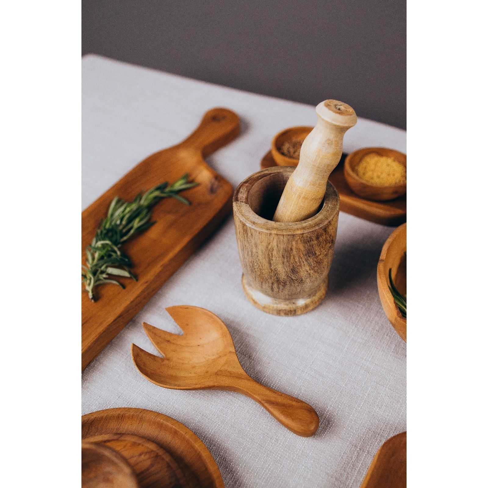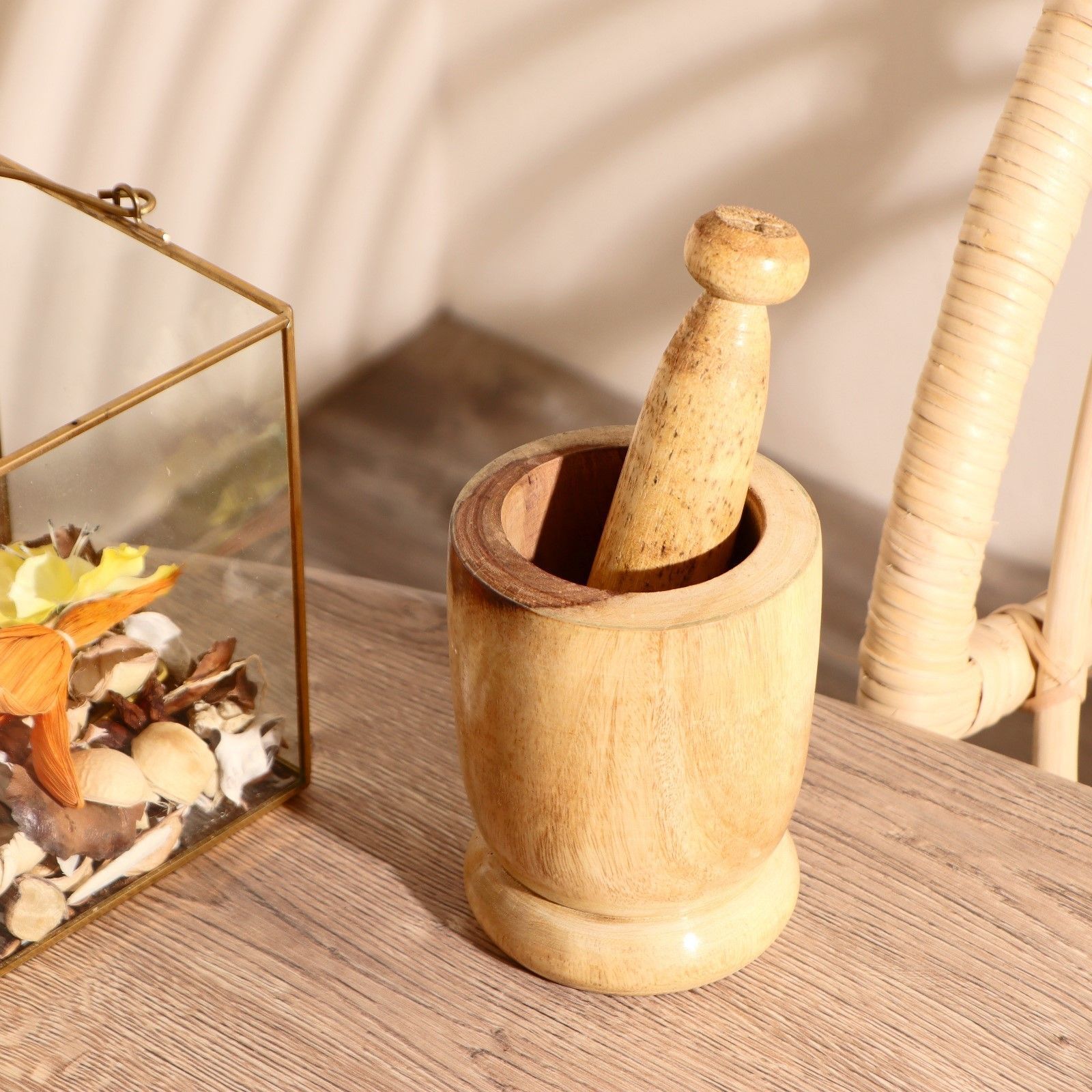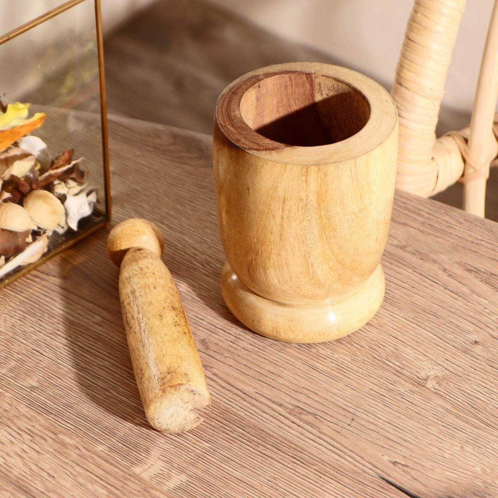 Натуральная деревянная ступка с пестиком станет вашим верным союзником в создании кулинарных шедевров. Благодаря ручной обработке поверхности она идеально подходит для бережного измельчения специй, трав и орехов, сохраняя их природный аромат.