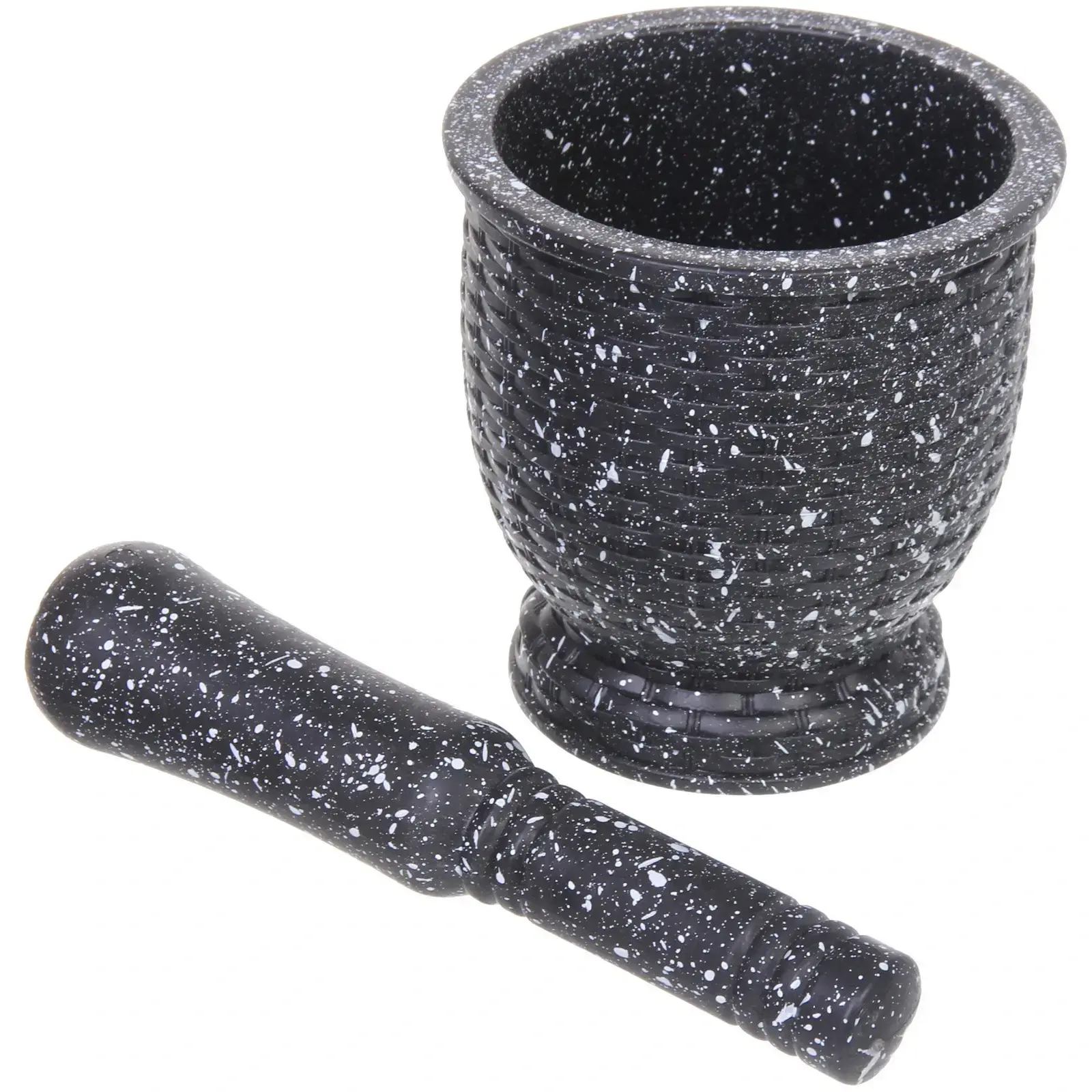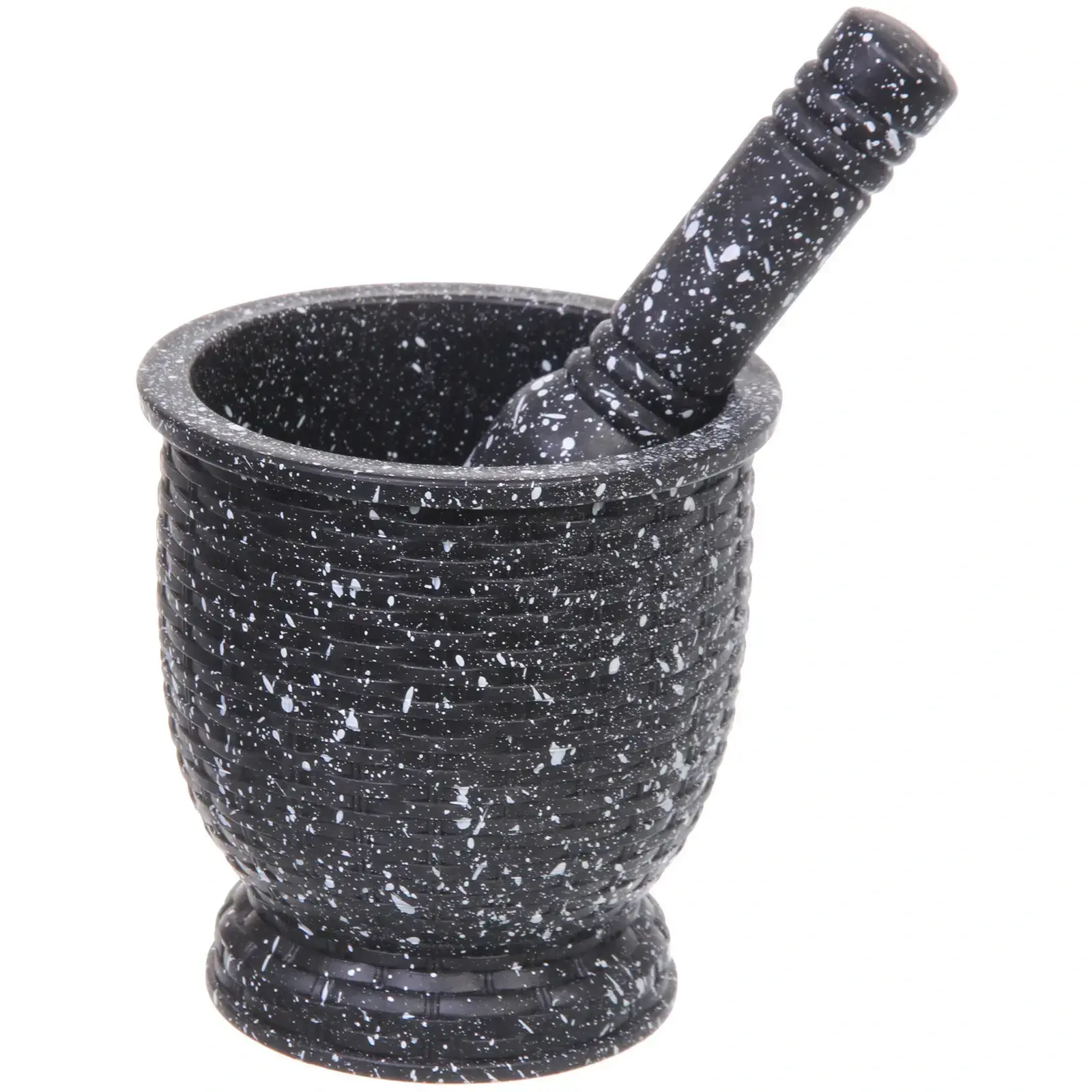 Ступка с пестиком — это незаменимый инструмент для каждой кухни, который поможет вам легко и быстро измельчить специи, травы и приготовить вкусные соусы. Благодаря своему компактному размеру 10,4*11 см, она идеально впишется в любую кухонную обстановку, а стильный черный цвет с белыми вкраплениями добавит элегантности вашему интерьеру.