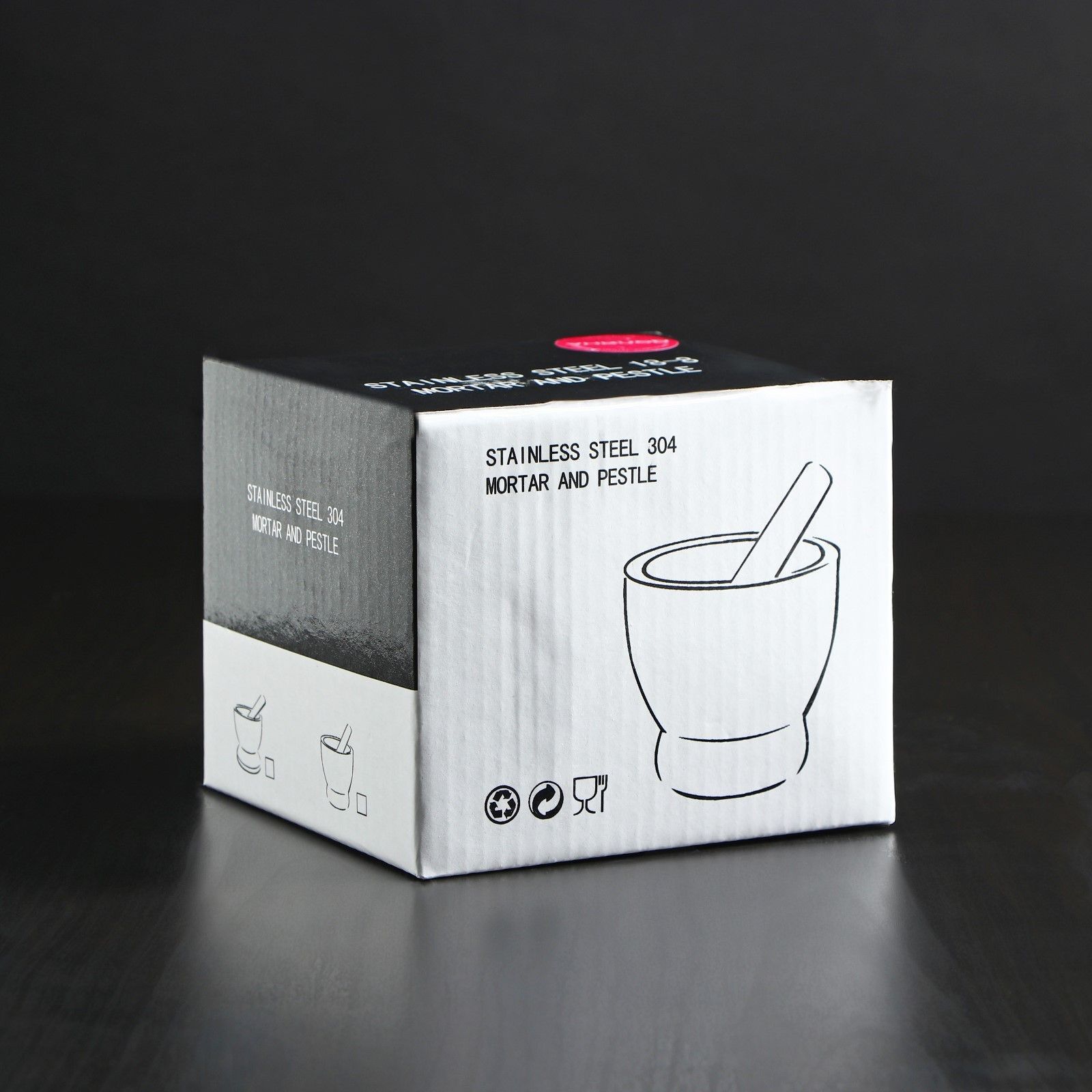 Ступка имеет диаметр 10 см и выполнена в серебристом цвете, что придает ей стильный и современный вид. Она легко моется и безопасна для использования с продуктами, что делает ее идеальным выбором для вашей кухни.