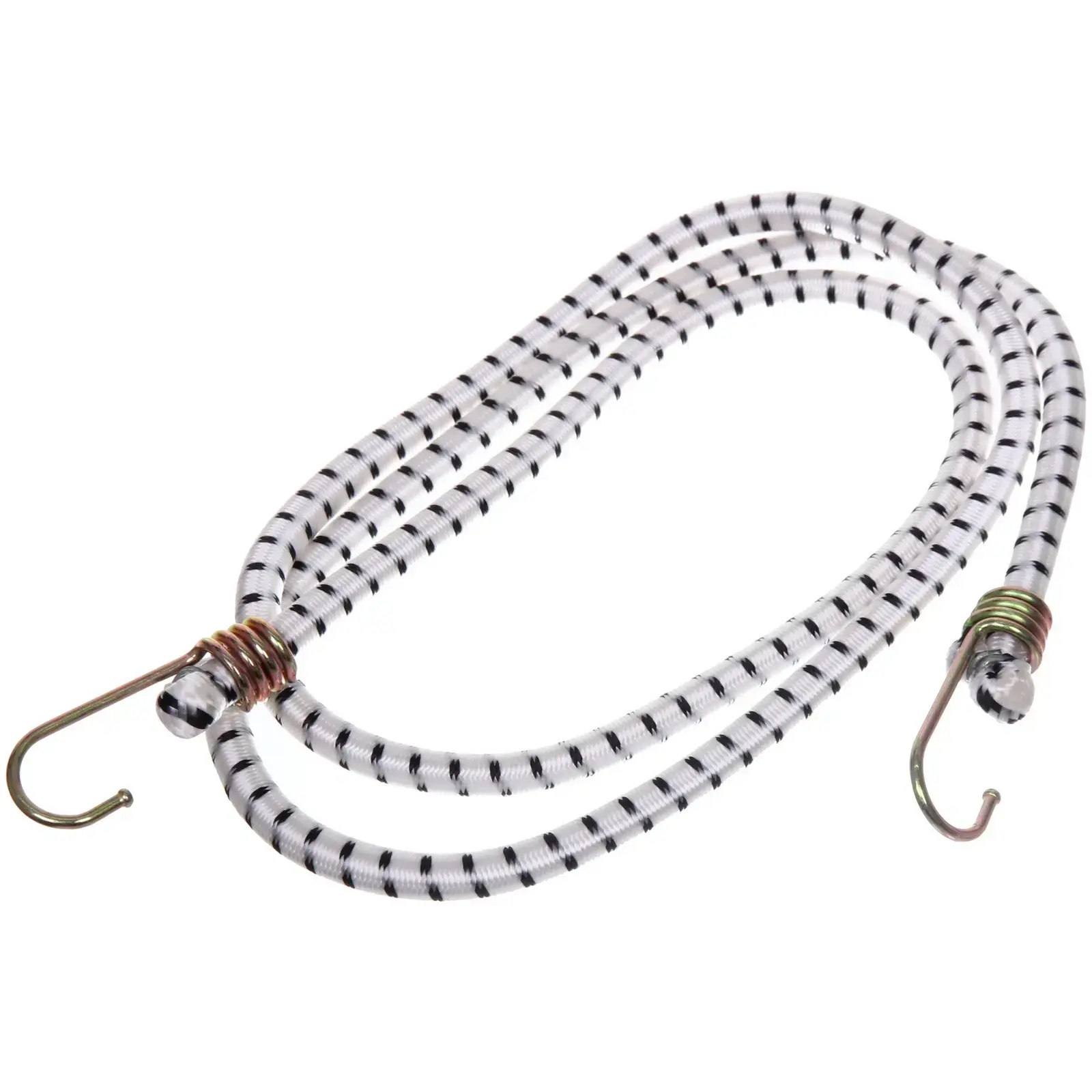 Стяжка выполнена в белом цвете с черными полосками, что придает ей стильный вид. Она имеет утолщенные и заостренные концы для надежного захвата. Длина стяжки составляет 1,5 метра, а диаметр — 10 мм, что делает ее универсальным инструментом для крепления. Не упустите возможность сделать вашу жизнь проще и безопаснее с помощью этой стяжки для груза!