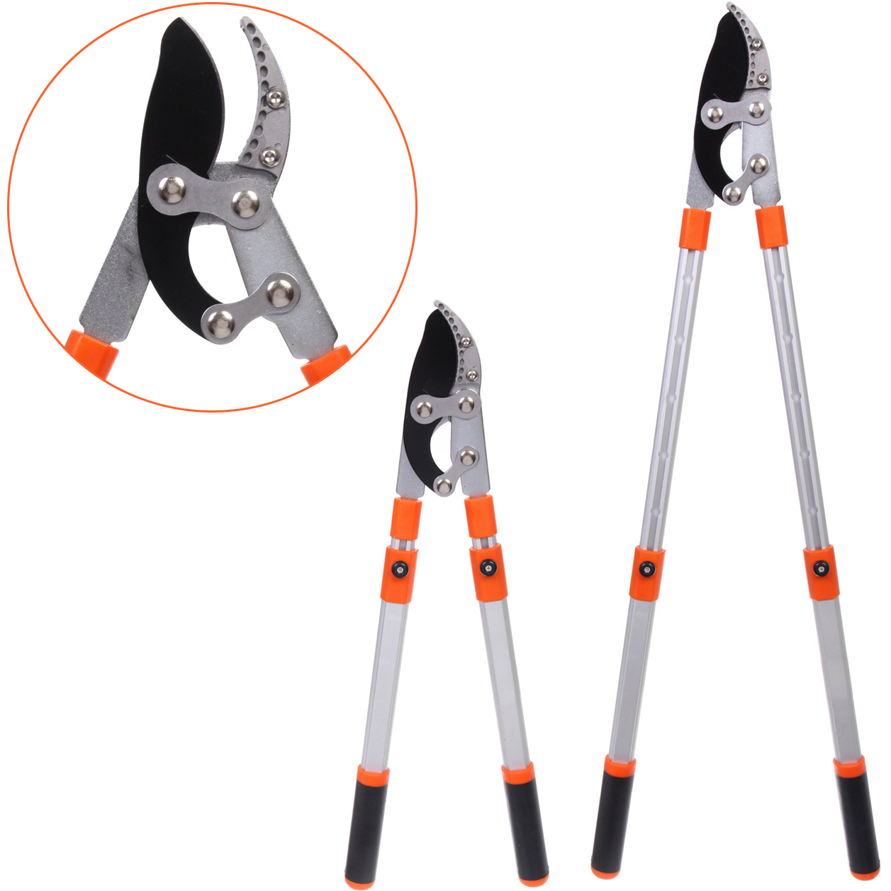 Сучкорез выполнен из прочного металла и легкого алюминия, что делает его легким и удобным в использовании. Длина ручек варьируется от 67 до 103 см, что позволяет работать с высокими ветками без лишних усилий. Этот инструмент идеально подходит для обрезки как тонких, так и толстых веток, что делает его универсальным решением для вашего сада.