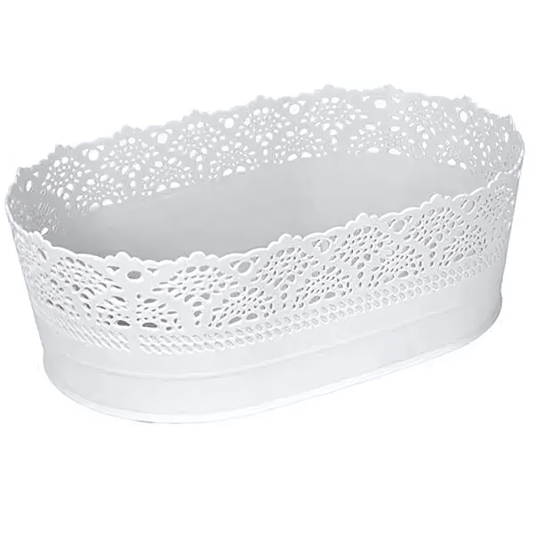 Декоративный кружевной узор по краю добавляет изюминку в интерьер, а компактные габариты 19×28 см позволяют разместить сухарики, печенье или фрукты без загромождения пространства. Легкая конструкция весом 0.1 кг обеспечивает простую переноску и хранение.
