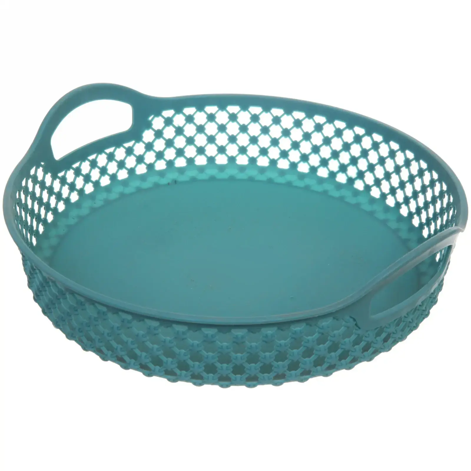 Круглая форма с приподнятыми краями предотвращает рассыпание содержимого. Сетчатая структура боковых стенок не только функциональна, но и создает интересный визуальный эффект. Симметричные ручки обеспечивают удобный захват даже при полной загрузке.