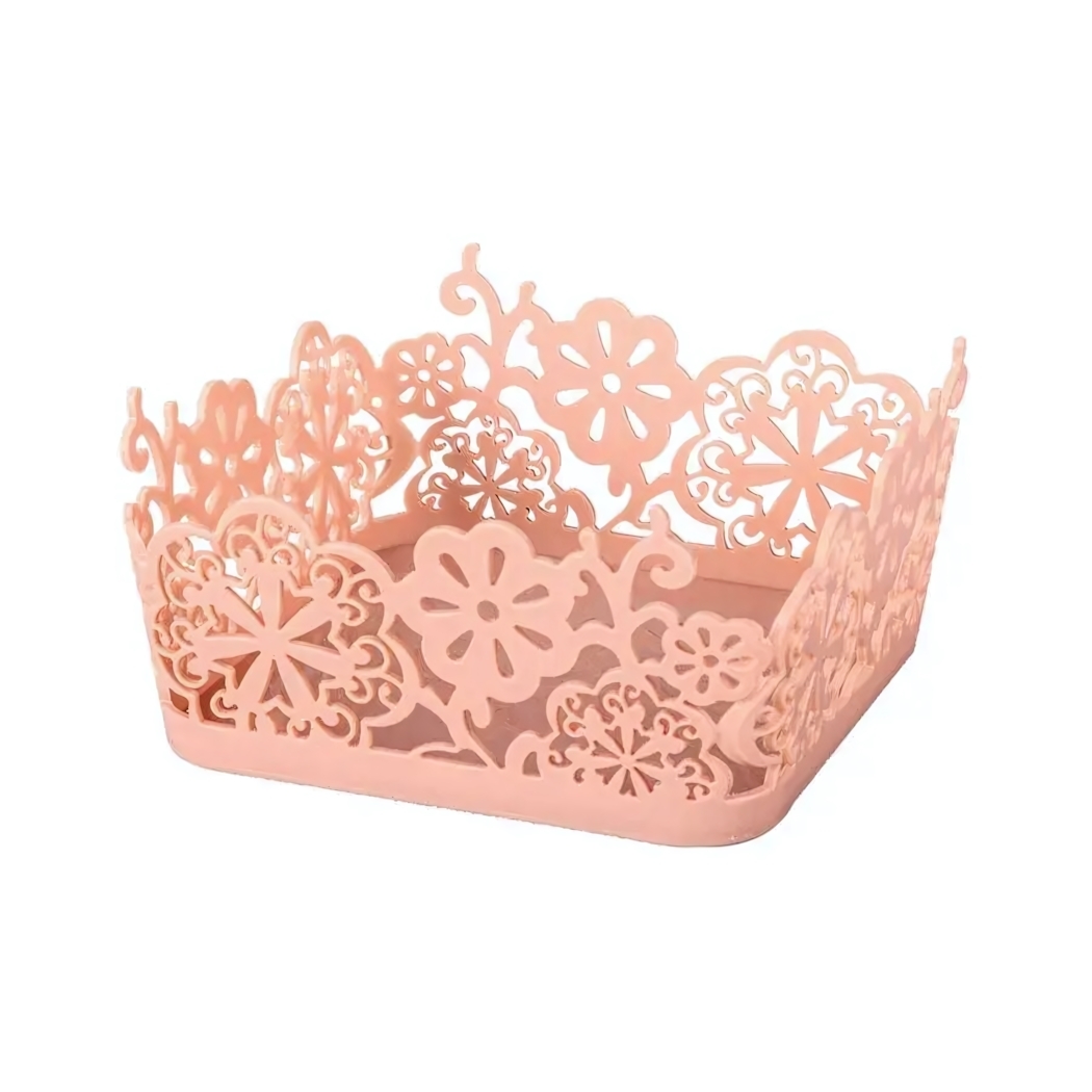 Элегантная декоративная корзина с цветочным орнаментом обеспечивает идеальные условия для хранения хлебобулочных изделий. Благодаря ажурным стенкам создается естественная вентиляция, сохраняющая хрусткость сухарей и свежесть хлеба.