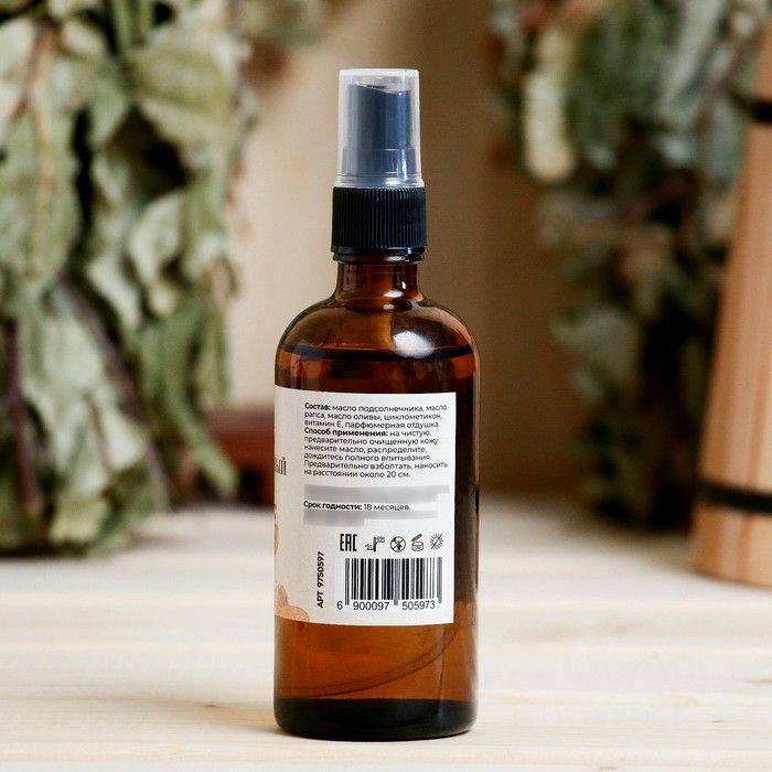 Объем флакона составляет 100 мл, что делает его удобным для использования как дома, так и в поездках. Упаковка выполнена из стекла с распылителем, что обеспечивает легкость в применении и сохранение всех полезных свойств масла. Не забывайте, что срок годности масла составляет 18 месяцев, что позволяет вам наслаждаться его качествами долгое время.