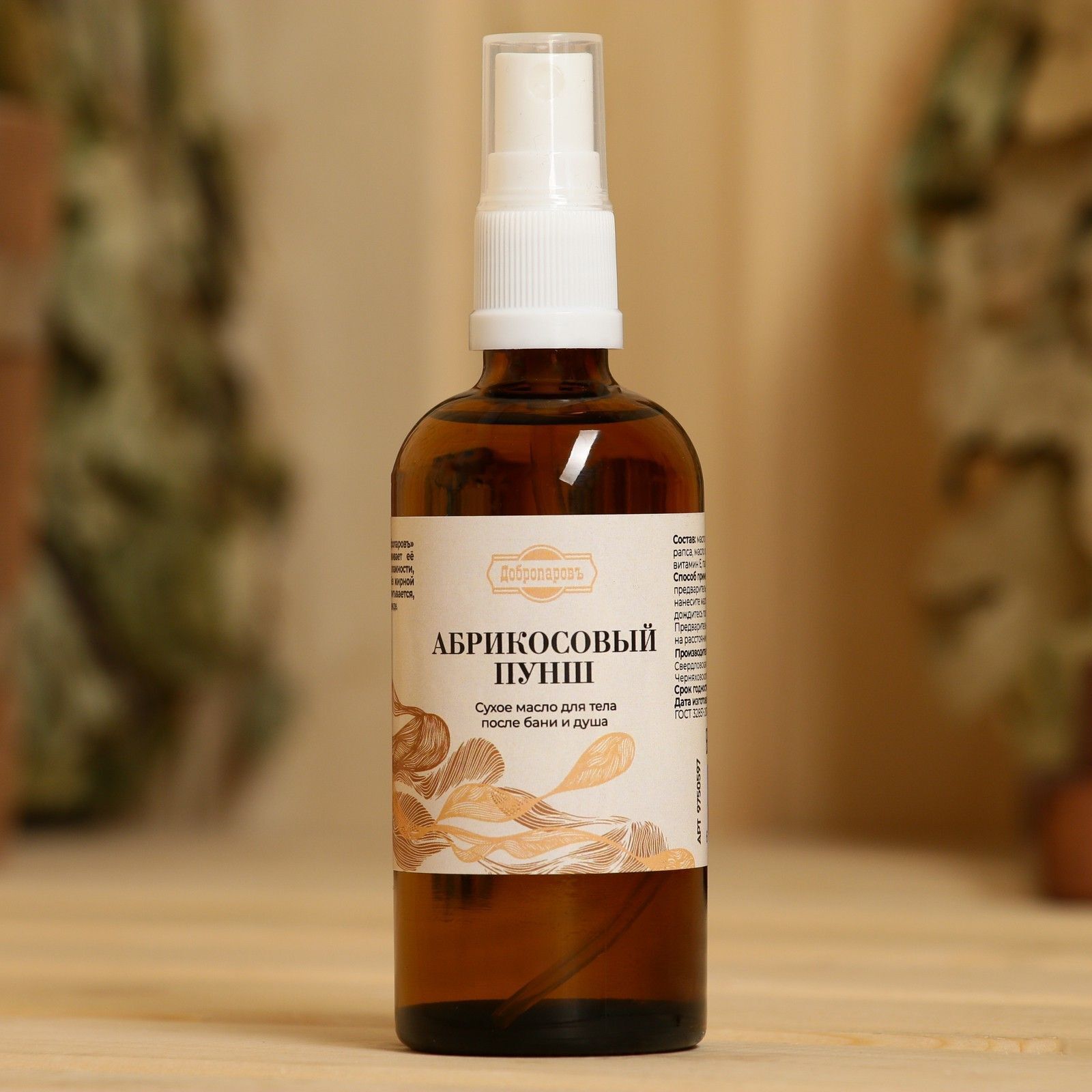 Сухое масло для тела после бани и душа 'Абрикосовый пунш' — это идеальное средство для увлажнения и питания вашей кожи. Оно создано для того, чтобы дарить вам комфорт и заботу после водных процедур, обеспечивая мягкость и бархатистость кожи. Приятный аромат абрикоса поднимает настроение и создает атмосферу уюта, что делает использование масла особенно приятным.