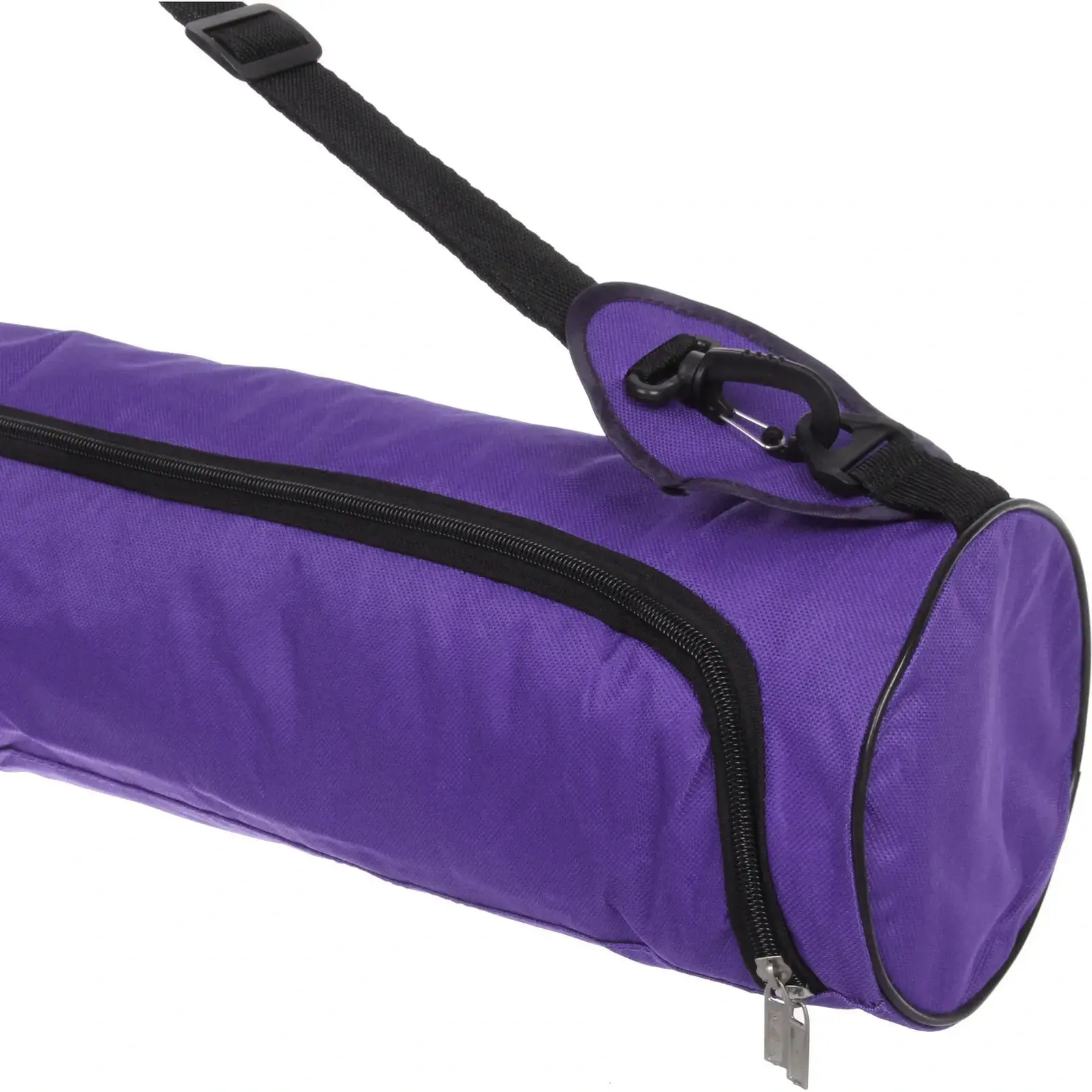 Сумка имеет цилиндрическую форму и оснащена черной молнией, которая проходит по всей длине, что обеспечивает легкий доступ к содержимому. Несъемный черный ремень для переноски и дополнительные ручки делают её удобной для транспортировки. Эта сумка идеально подходит для хранения и переноски ковриков для йоги, спортивной одежды и других необходимых аксессуаров.