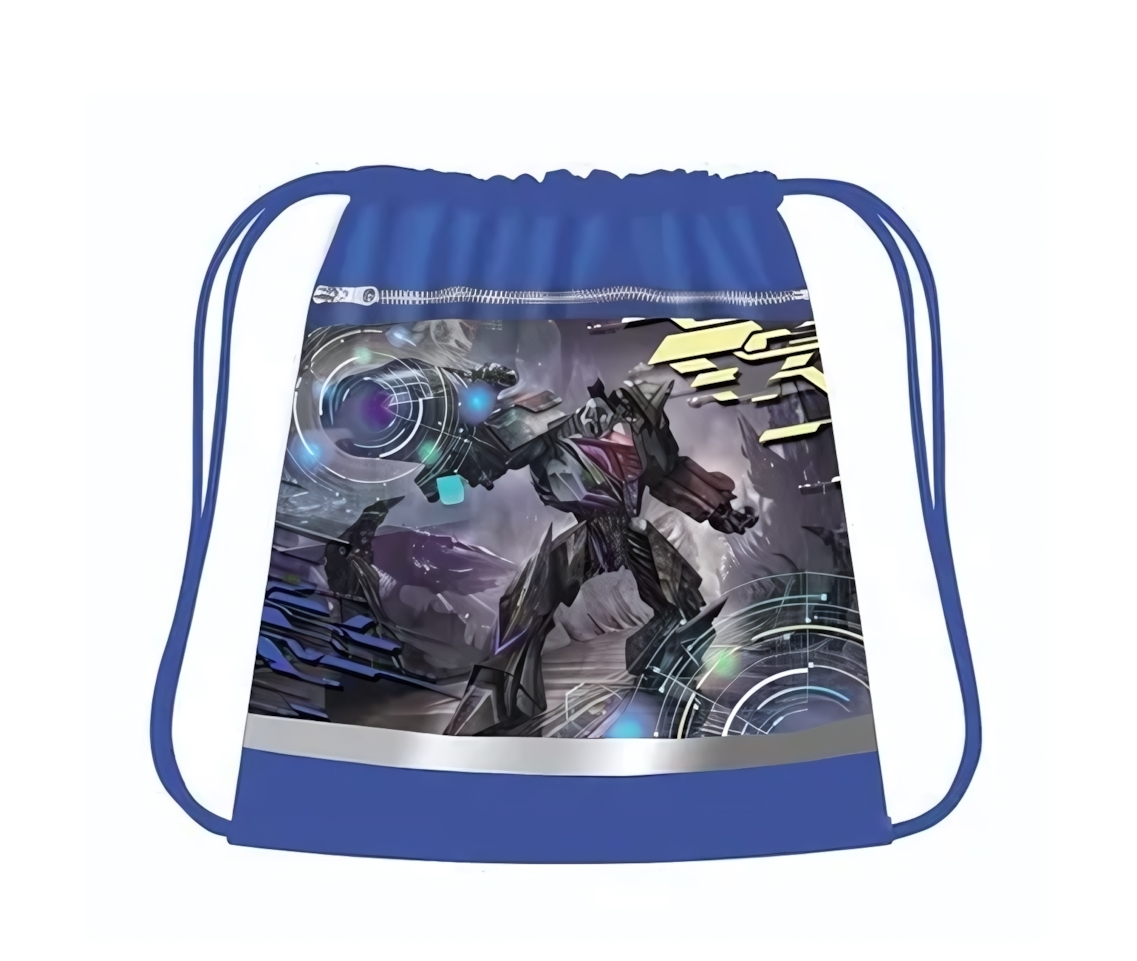 Дизайн сумки сочетает практичность и стиль: яркий принт с роботизированным персонажем и серебристая светоотражающая полоса делают аксессуар заметным и современным.