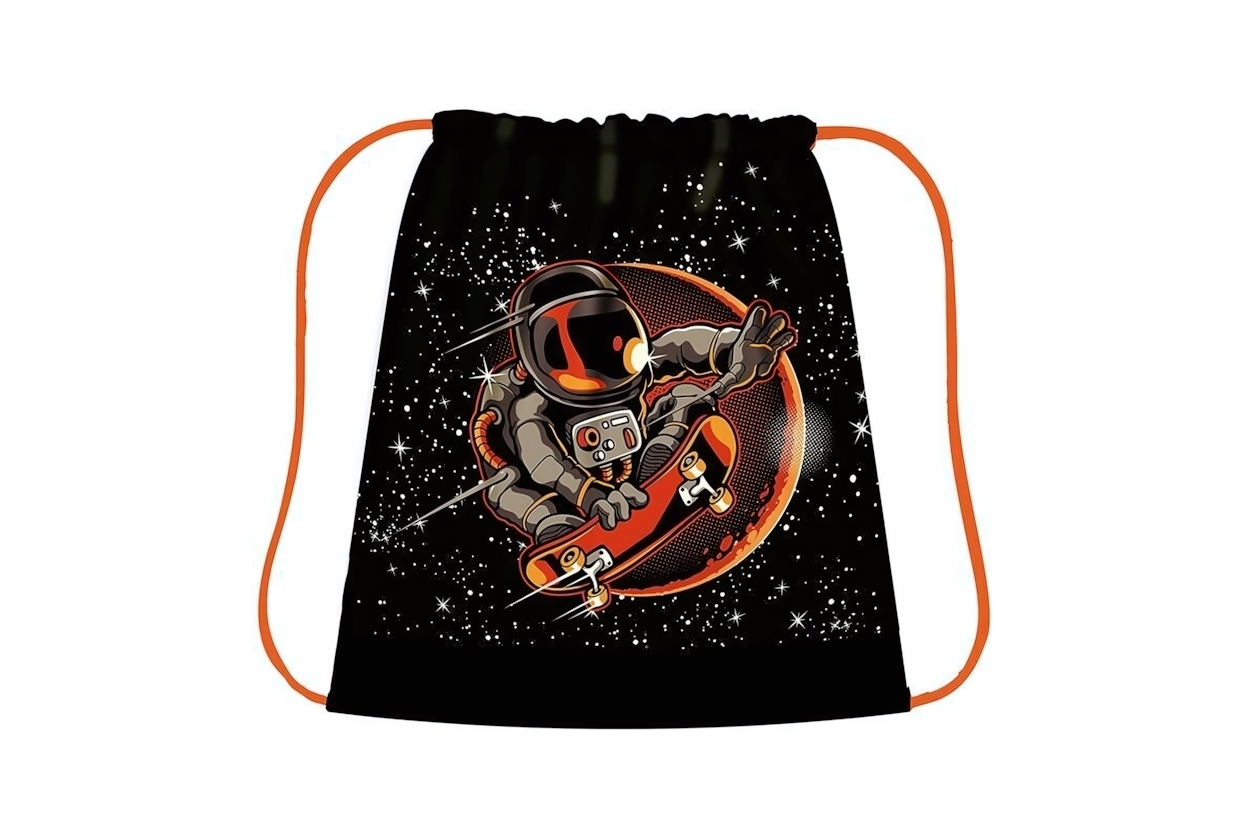 Благодаря прочной ткани и продуманному дизайну, сумка прослужит долго, сохраняя презентабельный внешний вид. Яркий принт с астронавтом на скейтборде привлекает внимание и подходит как мальчикам, так и девочкам.