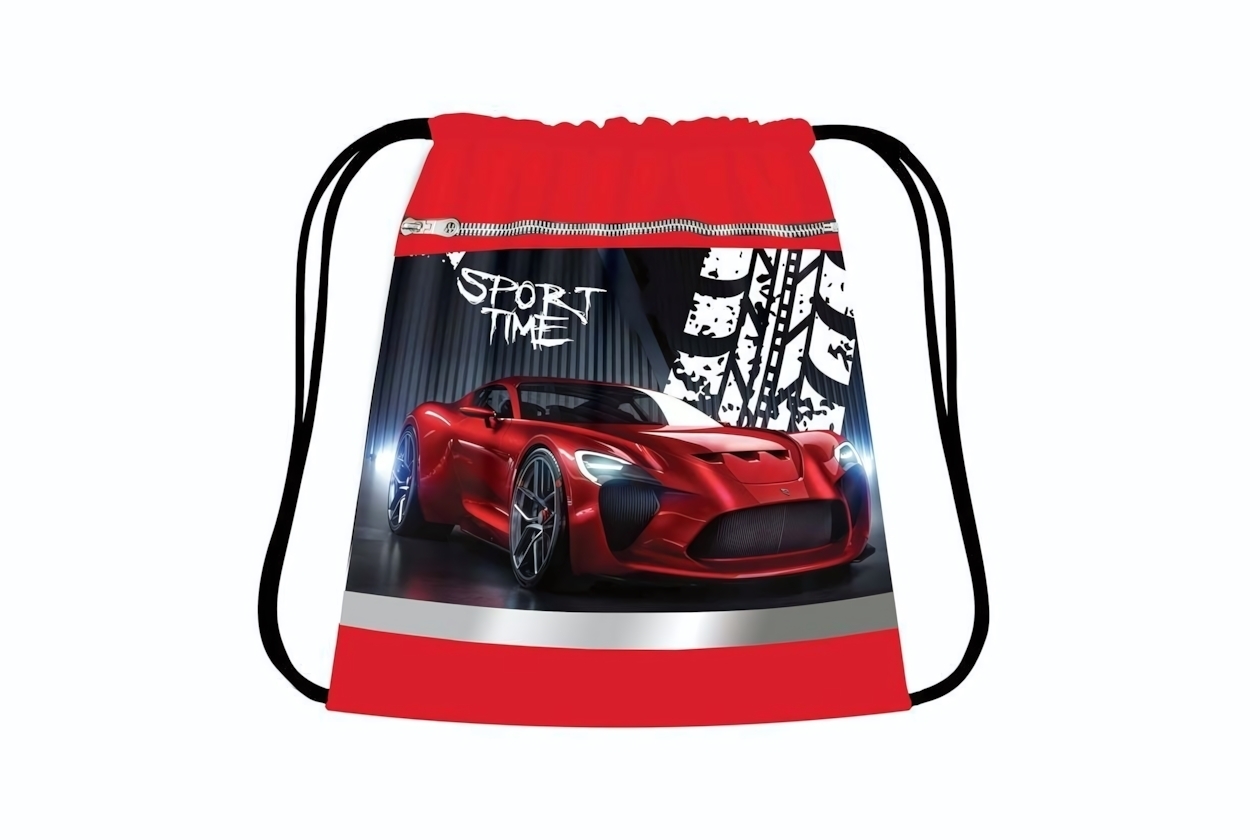 Спортивный дизайн с графикой «SPORT TIME» и автомобильными принтами делает эту модель особенно популярной среди подростков и студентов. Эргономичная форма рюкзака позволяет носить сумку на плечах, освобождая руки. Двойная система закрытия (шнурки + клапан) гарантирует сохранность вещей даже при активном движении.