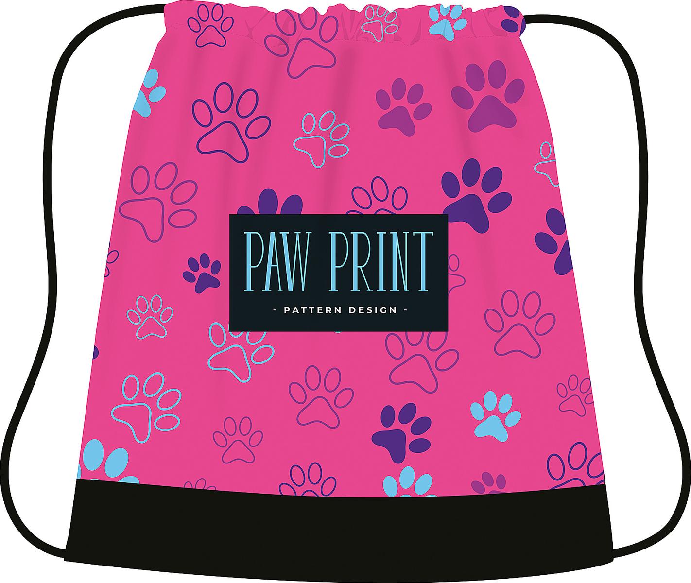 Нижняя часть сумки оформлена стильной черной горизонтальной полосой, что не только дополняет современный дизайн, но и делает аксессуар менее марким. Контрастные черные шнурки идеально сочетаются с графическими элементами и надписью «PAW PRINT», подчеркивая уникальность коллекции. Благодаря легкому весу и компактности в сложенном виде, мешок не занимает лишнего места в школьном ранце или рюкзаке.