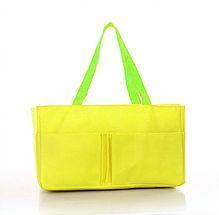 Сумка хозяйственная из спанбонда, 34х20х13 см, желтая, с карманами и зелеными ручками