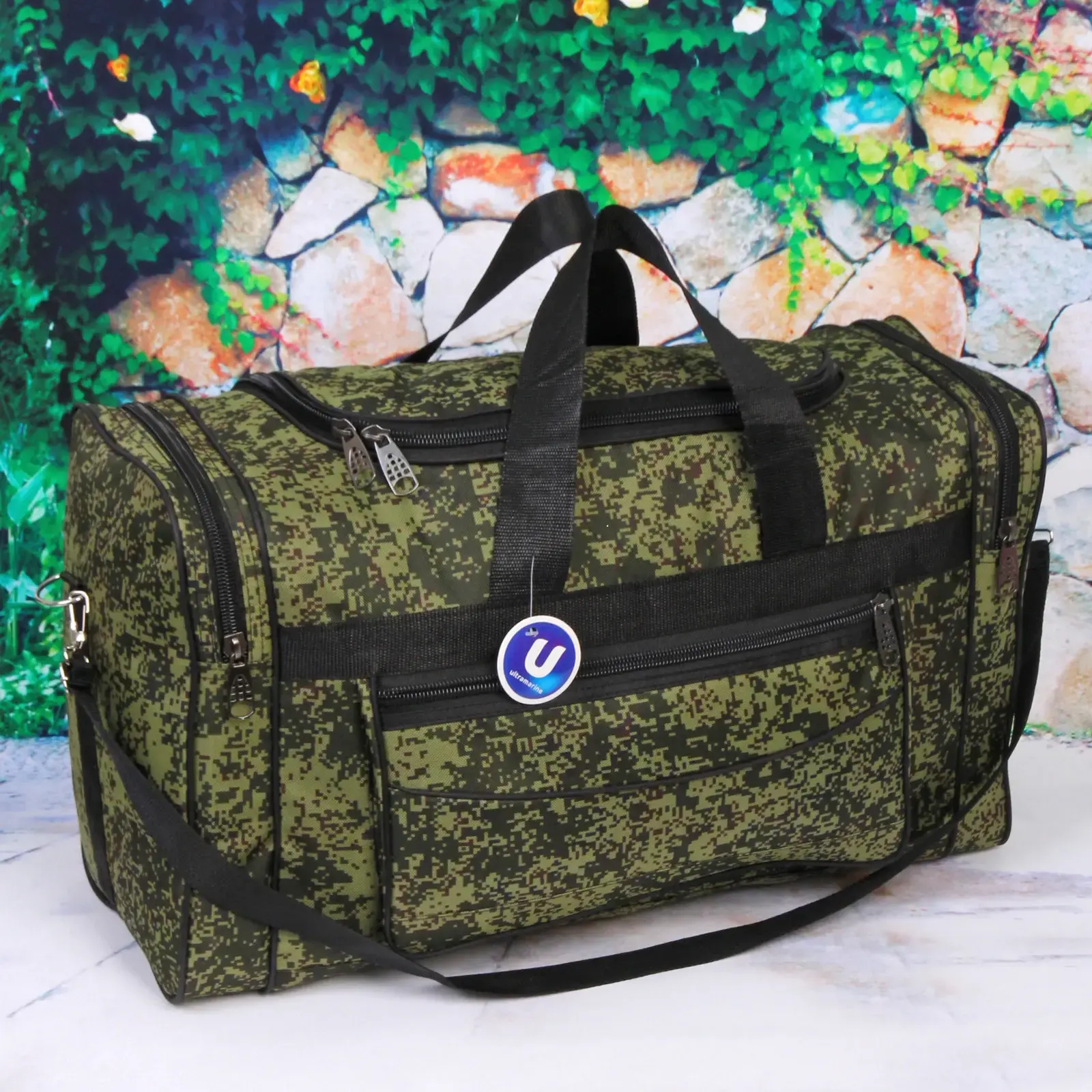 Сумка выполнена из прочного полиэстера, что гарантирует её долговечность и устойчивость к износу. Камуфляжный принт не только стильный, но и практичный, скрывающий загрязнения. Размеры 60*34*25 см позволяют использовать сумку для различных целей — от спортивной экипировки до повседневных поездок. Сумка «KANADA» — это не просто аксессуар, а надежный помощник в вашем активном образе жизни.