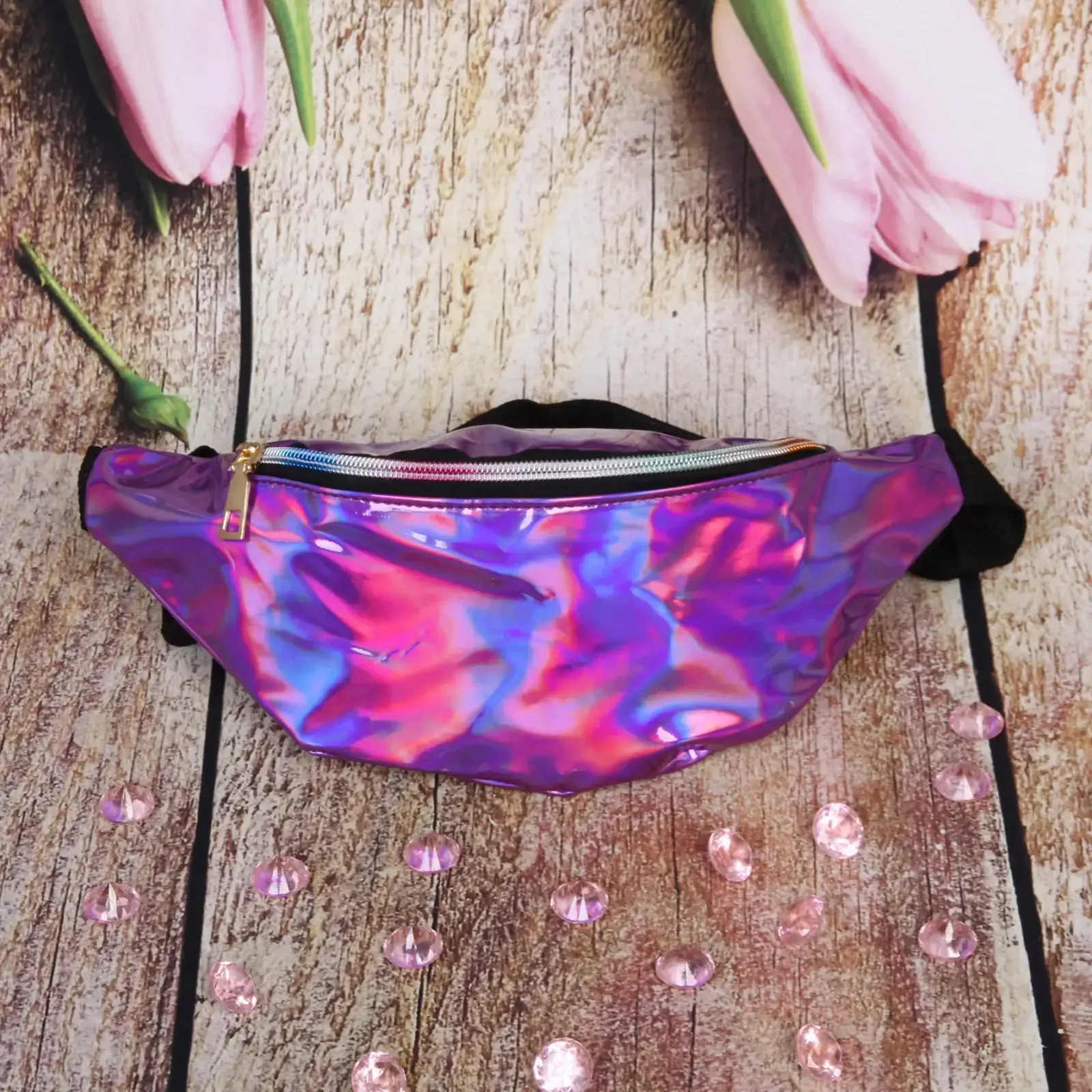 Сумка на пояс 'Ультрамарин - Elements', голографическая, фиолетовая, 30*13*7см