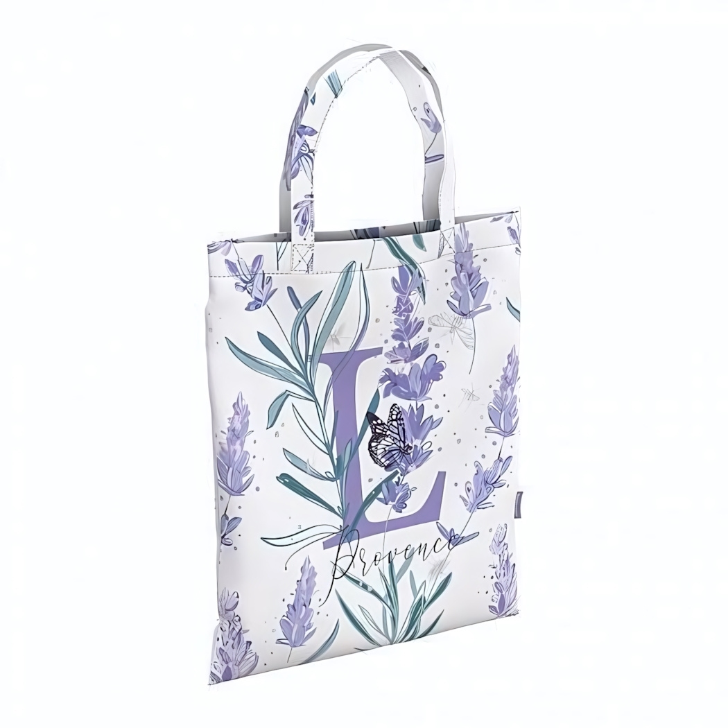 - Уникальный дизайн: Белый фон с нежным цветочным принтом в лавандовых тонах и надписью "Provence" придают сумке особый шарм.