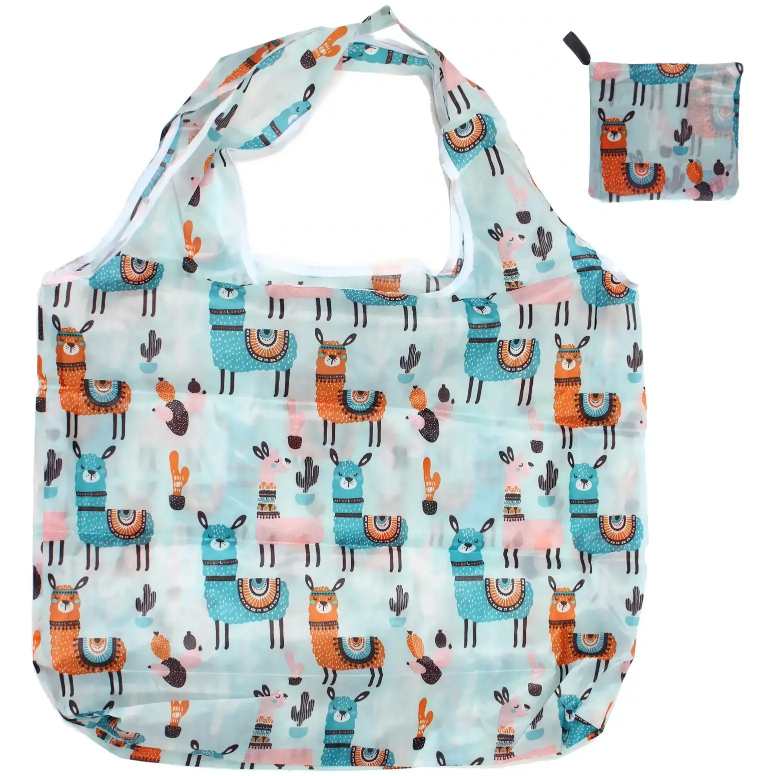 Сумка-шоппер с очаровательным принтом альпак станет вашим надежным спутником в магазине, на прогулке или в путешествии. Вместительный размер 65х46 см позволяет уместить все необходимое.