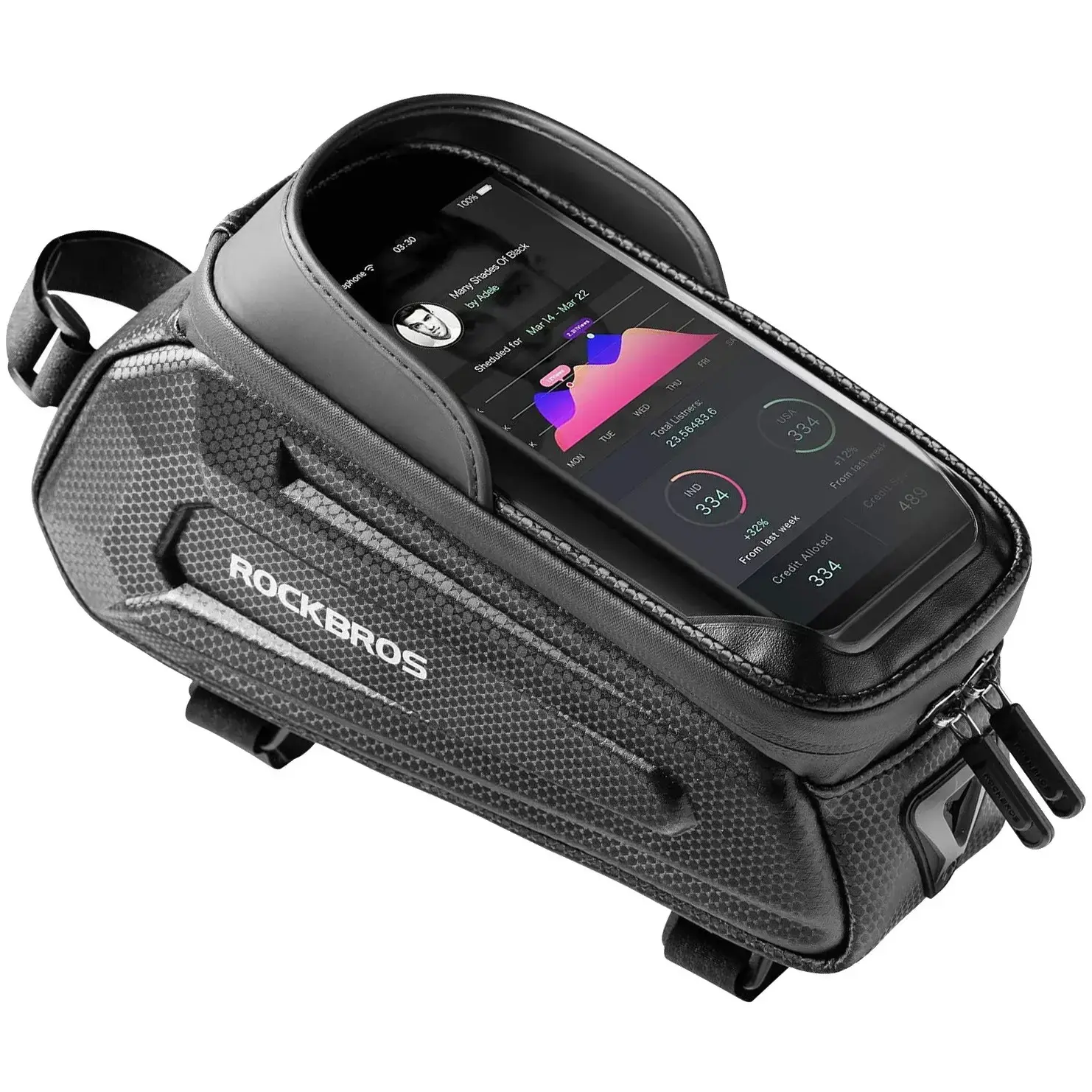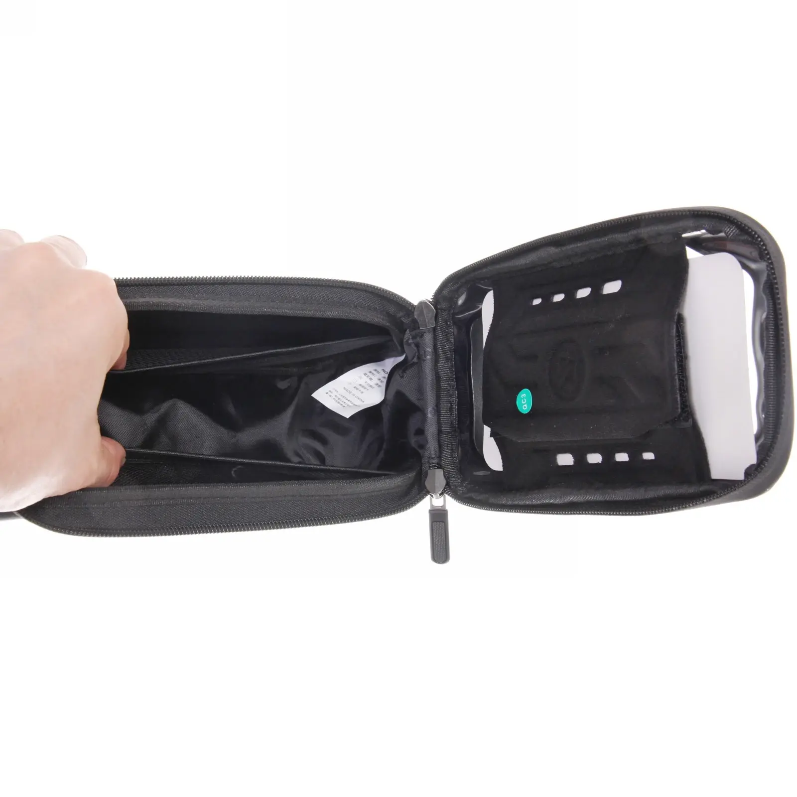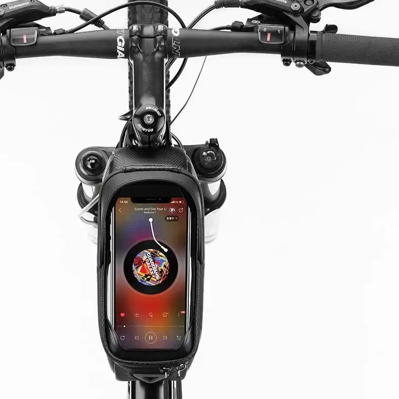 Функциональность: легко крепится на раму в районе руля с помощью текстильных ремней на липучках, внутри есть отделения для кошелька, ключей и инструментов. Верхняя часть оснащена прозрачным чехлом из полиуретана с пластиковым козырьком для смартфона, что позволяет использовать его как навигатор или для уведомлений, не снимая устройство. Подходит для активных велосипедистов и любителей прогулок.