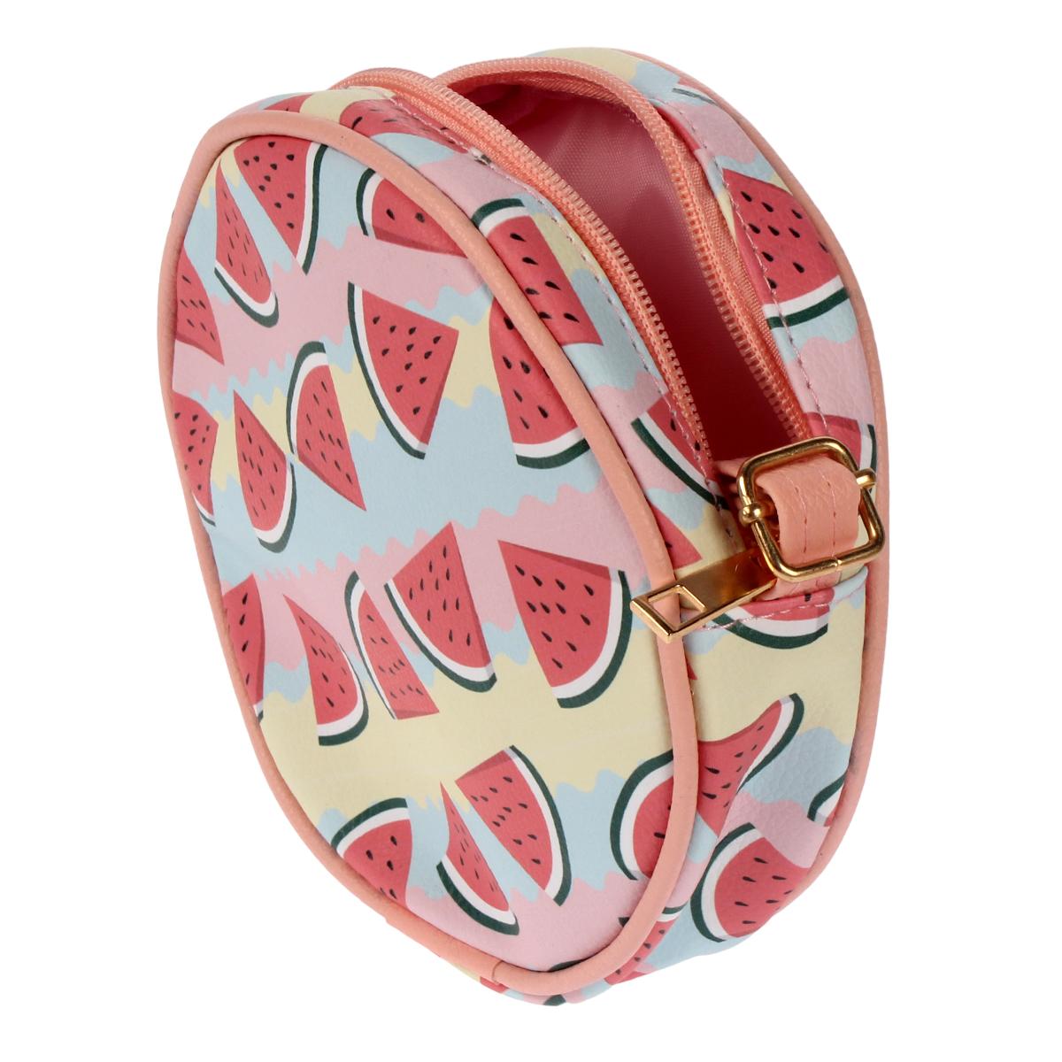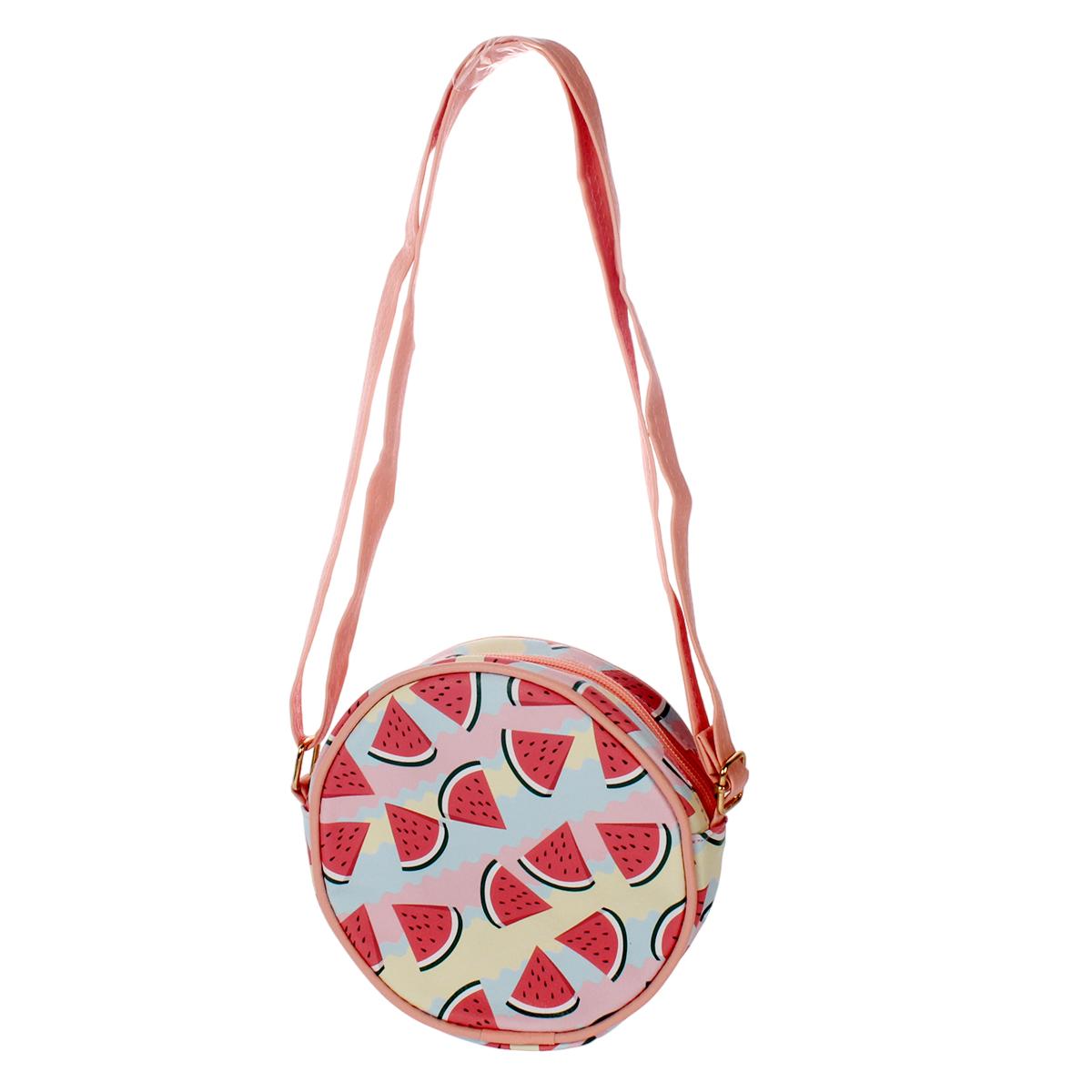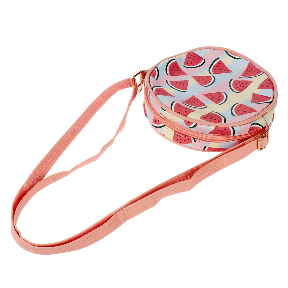 Сумочка детская круглая "Арбузики", 15.5*4см, кожзам, розовая с арбузами – стильный аксессуар для девочки