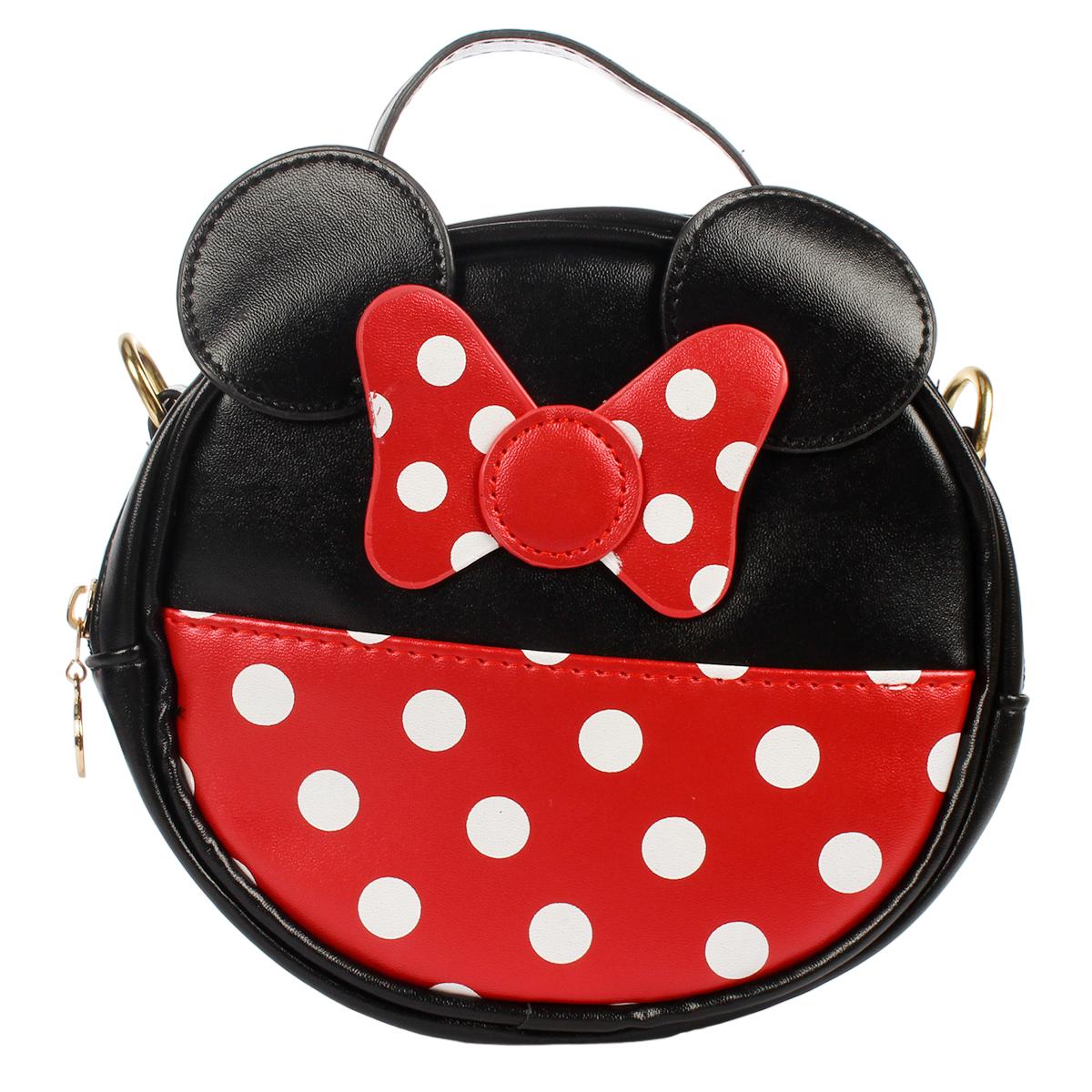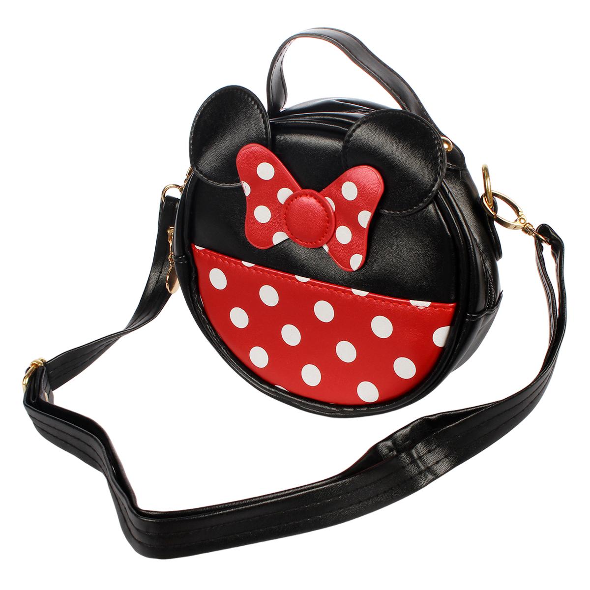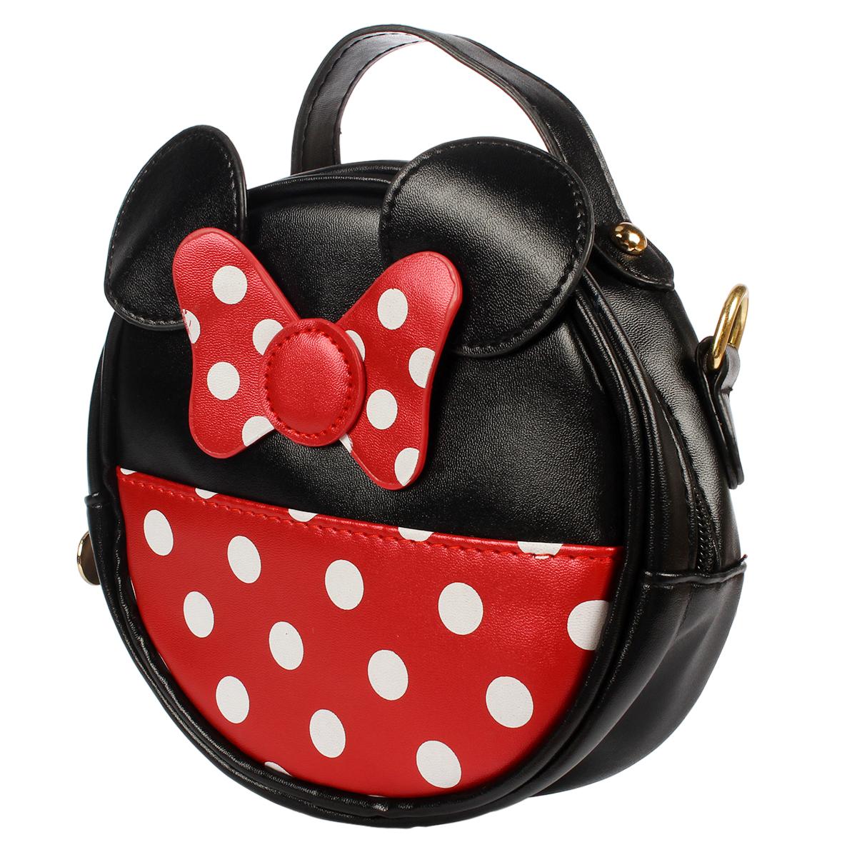 Подарите своей дочке очаровательную сумочку, которая станет ее любимым аксессуаром! Эта круглая сумочка "Микки Маус", выполненная из качественного кожзама, не только выглядит стильно, но и очень удобна в использовании. Яркий дизайн с ушками и бантиком, а также разнообразие цветов (черный, красный, розовый, голубой) обязательно понравятся любой девочке.