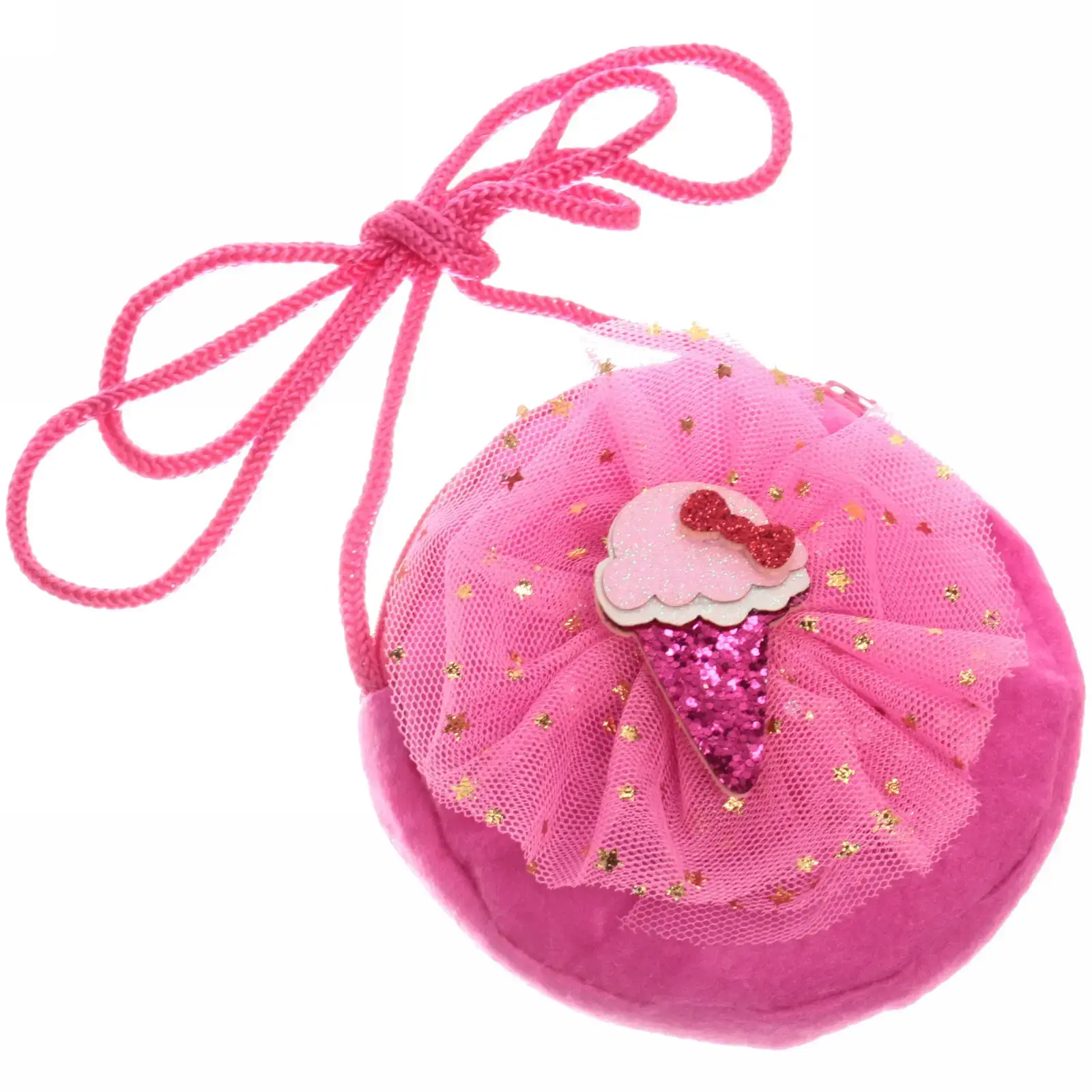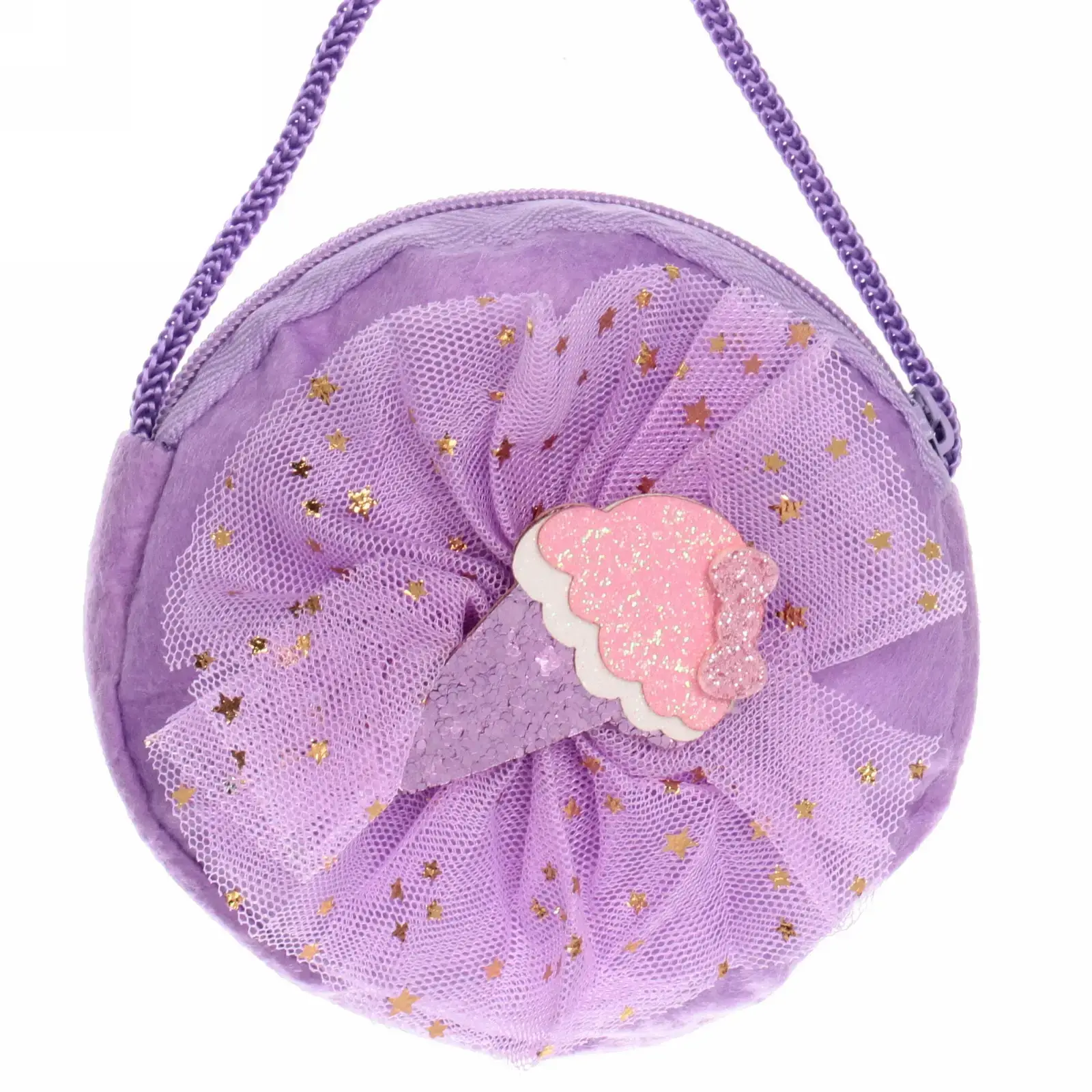 Сумочка имеет размеры 9 см в диаметре и выполнена из текстильного материала, что делает её легкой и приятной на ощупь. Яркий дизайн и интересные детали, такие как аппликация в виде мороженого, делают её идеальным выбором для подарка или повседневного использования. Позвольте вашему ребенку выделиться с этой стильной сумочкой!