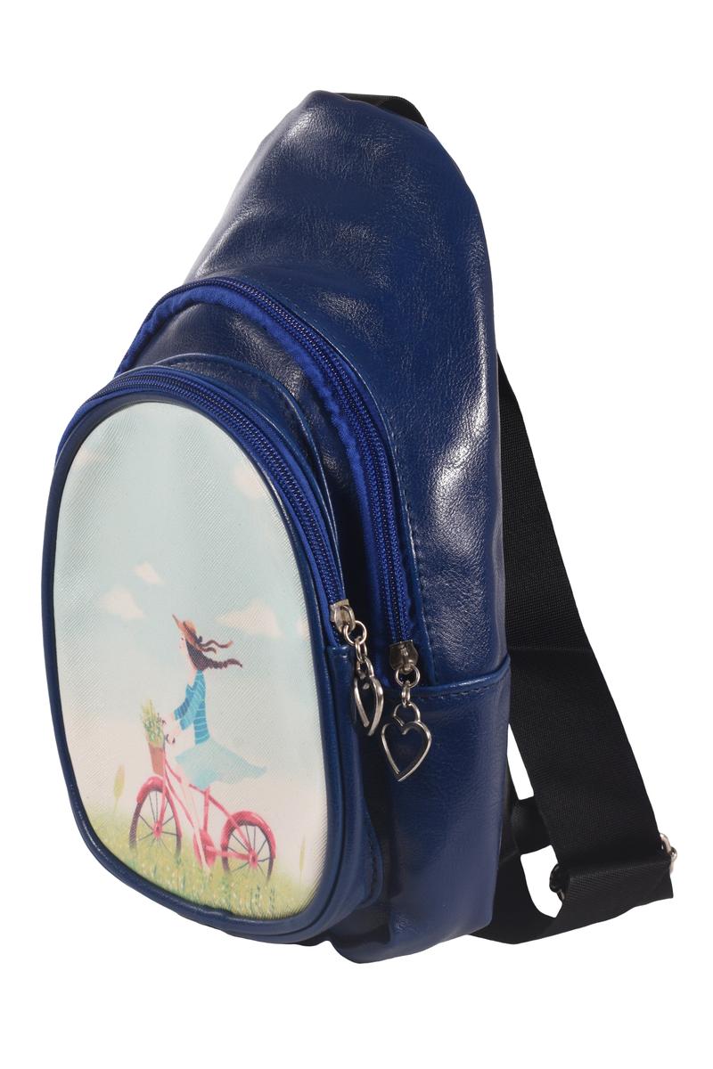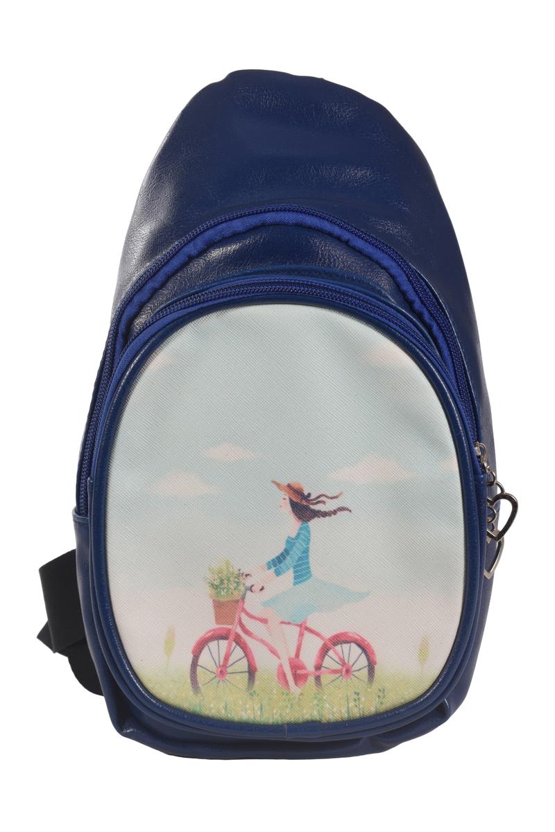 Сумочка-рюкзак темно-синяя с принтом, кожзам, регулируемый ремень