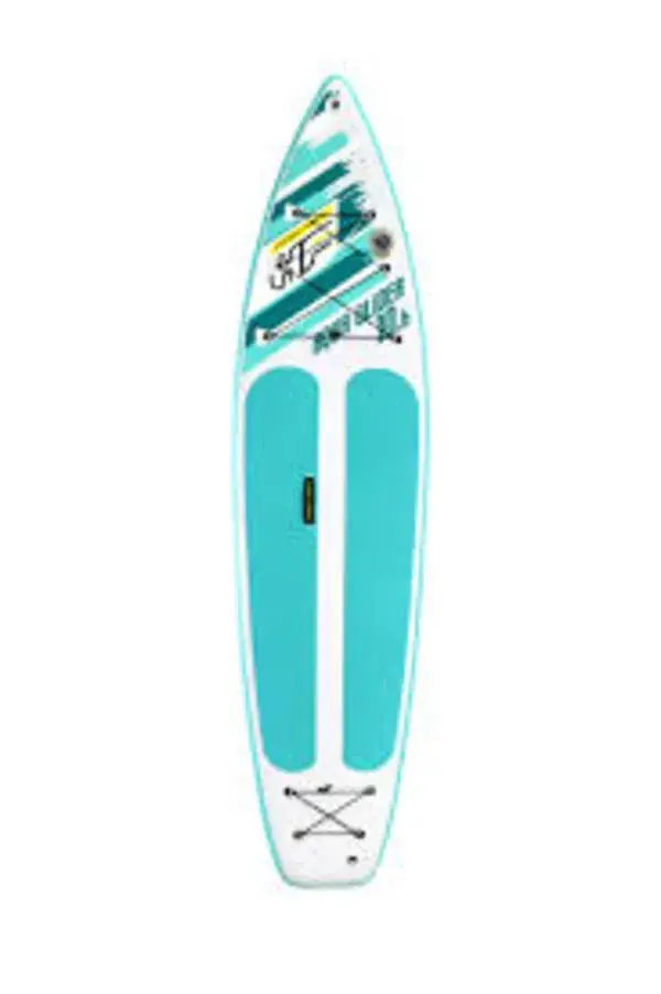 Aqua Glider имеет прочную конструкцию из материала «drop stitch», что делает ее жесткой и долговечной, как обычные твердые доски, но при этом легкой и портативной. Встроенная ручка на палубе позволяет легко переносить доску в воду и обратно. Два съемных плавника обеспечивают курсовую устойчивость, а нескользящий коврик помогает сохранять равновесие во время плавания.