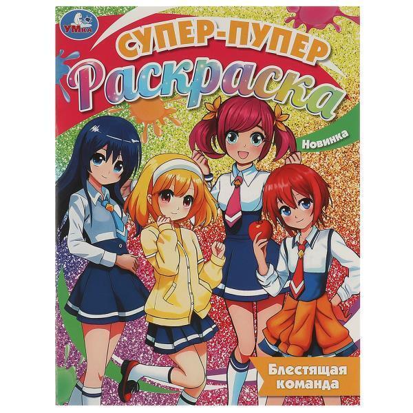Раскраска «Блестящая команда» с аниме-персонажами и глиттером, 16 стр., 195х255 мм, офсетная бумага