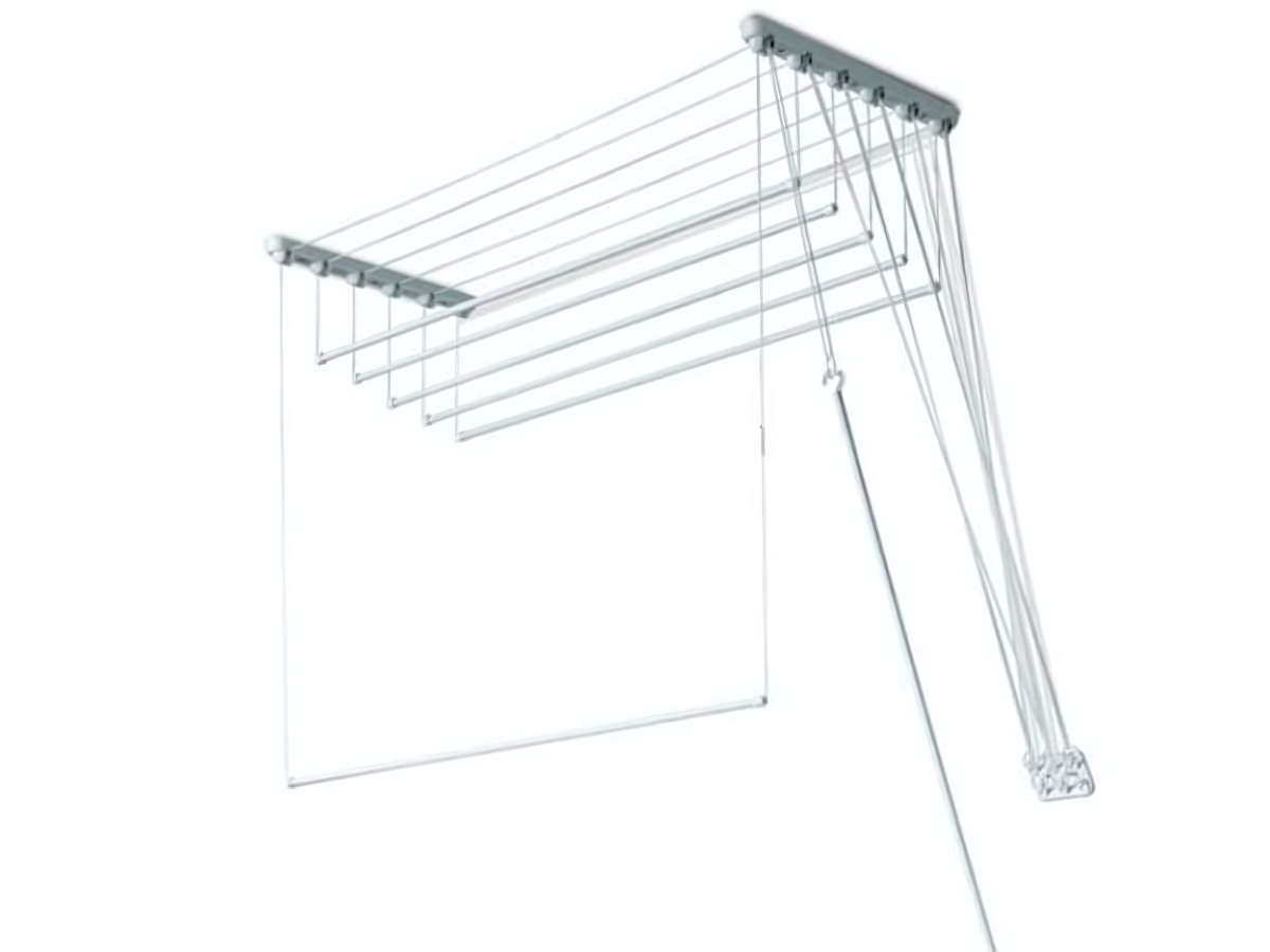 Каждый из 6 металлических прутьев работает отдельно: вы можете поднять или опустить конкретную перекладину с помощью специальной ручки. Это удобно при развешивании крупных и мелких изделий. Сушилка актуальна для ежедневной стирки, сезонной смены гардероба и деликатных тканей — конструкция справляется с разной нагрузкой и не мешает основному пространству.