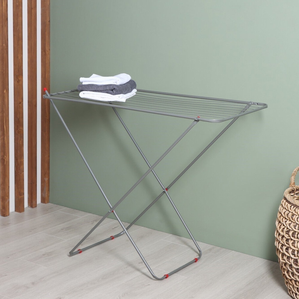 Изделие легко использовать: достаточно поставить его на пол в любом помещении, оно занимает минимальный пространство и легко складывается при необходимости. Крепкие металлические прутья обеспечивают надежность и долговечность, а износостойкий материал — защиту от коррозии и механических повреждений. Современный серый цвет гармонично впишется в интерьер любой комнаты, а компактные габариты позволяют хранить сушилку без проблем, освобождая место для других вещей.