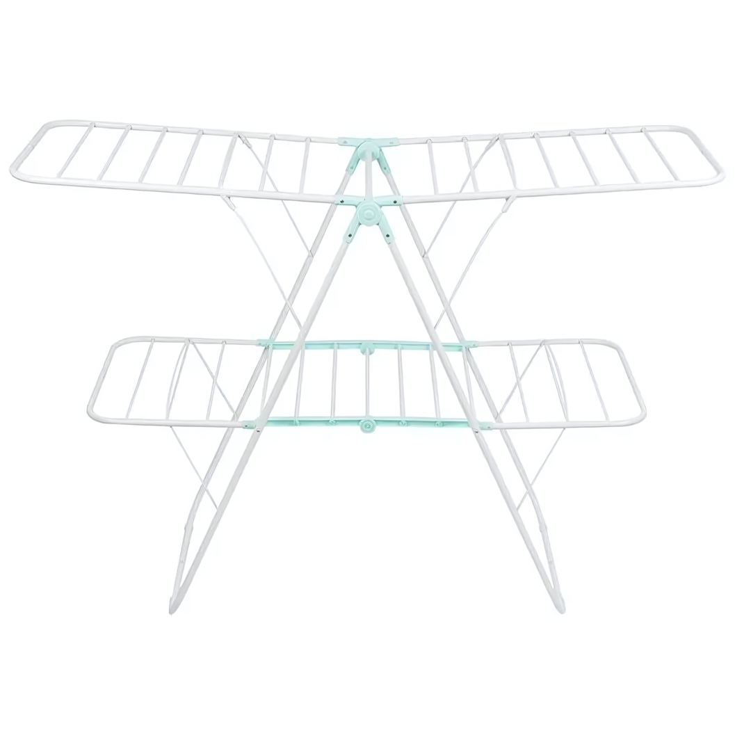 Сушилка состоит из двух полноценных уровней, что позволяет размещать вещи с разной степенью влажности или разделять их по типам. Металлические решетки каждого уровня обеспечивают равномерную циркуляцию воздуха вокруг ткани, ускоряя процесс высыхания и предотвращая появление неприятных запахов.