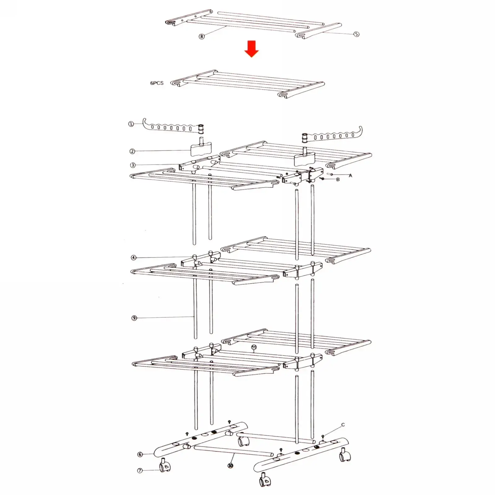 - 3 многофункциональных уровня с перекладинами для развешивания одежды