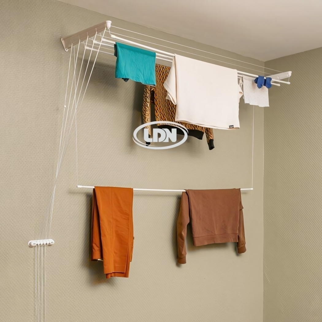 Сушилка предназначена для установки на стене, что позволяет использовать ее в любом удобном месте: на балконе, в ванной или в прихожей. В комплект входят пластиковые кронштейны с роликами, которые крепятся к стене, а также металлические стержни в оплетке ПВХ, которые подвешиваются горизонтально. Это делает сушилку простой в эксплуатации и удобной в использовании.
