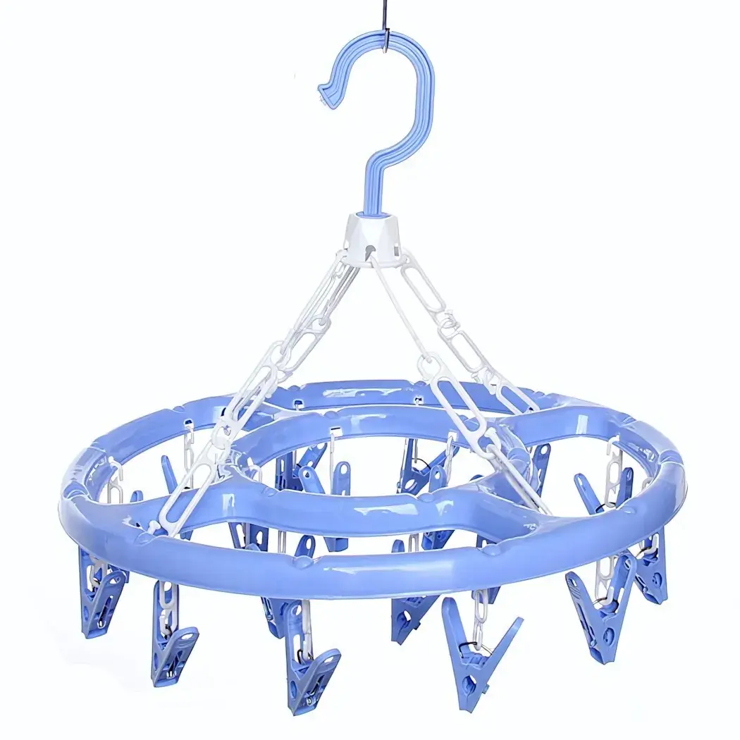 Сушилка предназначена для сушки одежды в домашних условиях. Она легко подвешивается благодаря металлической цепочке и пластиковому держателю с крючком, что делает ее использование простым и удобным. Подходит для всех типов тканей, включая деликатные, благодаря надежным прищепкам, которые не повреждают материал.