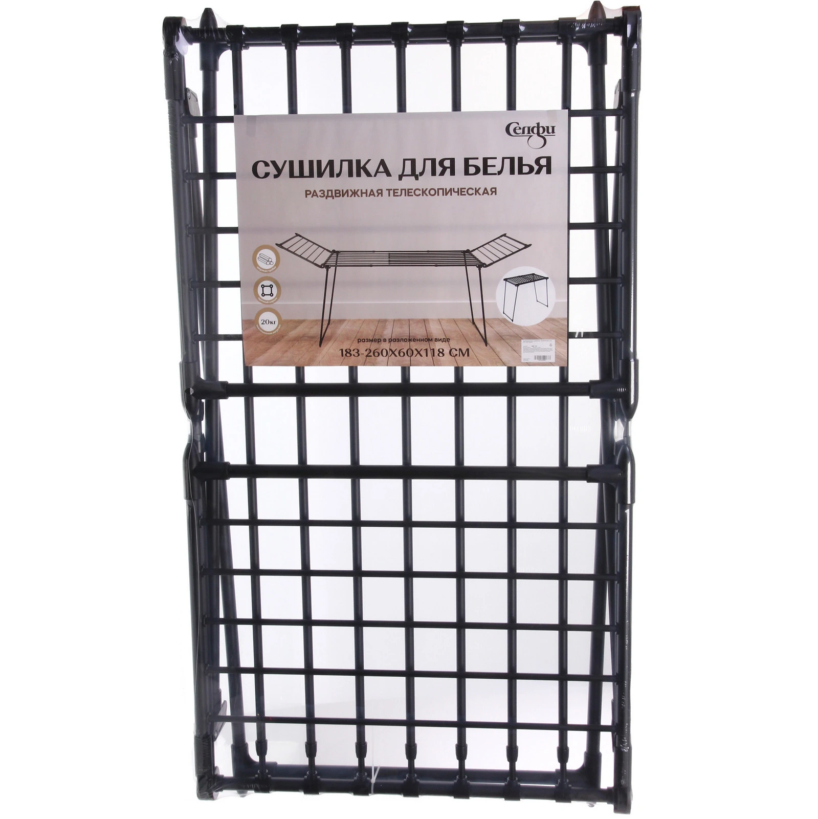 - Телескопическая конструкция: Длина центральной части регулируется от 183 до 260 см, что позволяет адаптировать сушилку под доступное пространство и объем белья.