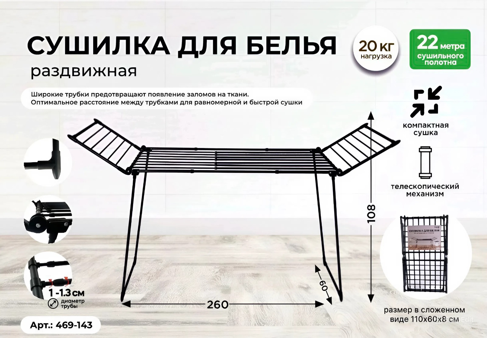 - Высокая нагрузка: Прочная металлическая конструкция выдерживает до 20 кг мокрого белья, обеспечивая надежность и долговечность.