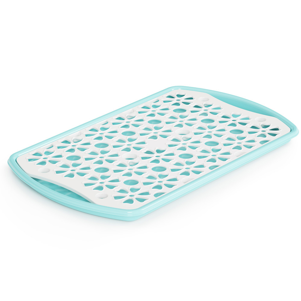 Изделие изготовлено из прочного пластика, устойчивого к повседневным нагрузкам. Доступные цветовые варианты (белый и светло-голубой) отлично впишутся в любой интерьер. Специальная перфорация обеспечивает быстрое стекание воды, а закругленные края делают использование безопасным.