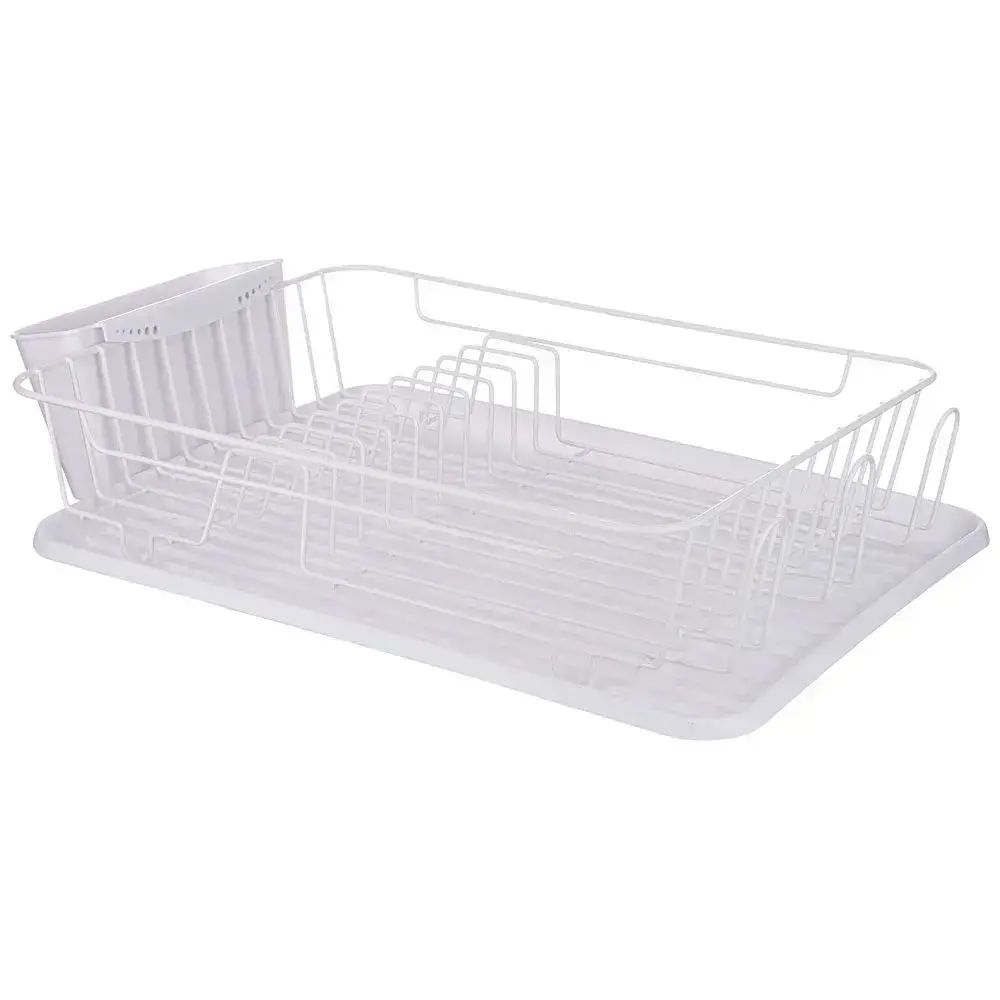 Сушилка для посуды с поддоном, 42.5х30.5х10 см, пластик/металл, компактная, белая