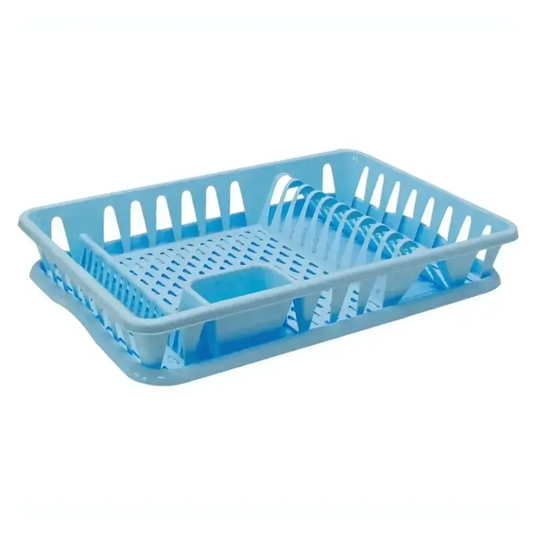 Сушилка для посуды большая 32х49 см, пластик, голубой, поддон для воды, секции для разной посуды