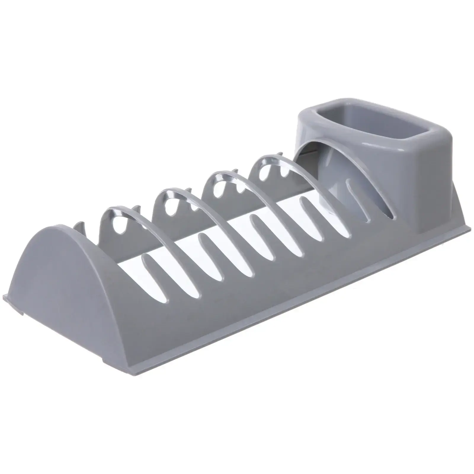 Сушилка для посуды серая пластиковая 34х25х9 см, компактная с 5 секциями, устойчивая к воде