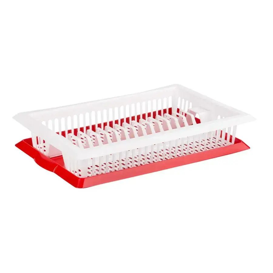 Эта сушилка выполнена из прочного и безопасного пластика белого цвета, обладает компактными размерами и высоким бортом для надежного размещения посуды. Подходит для семей, для использования дома, в кафе или в маленьких кухнях.