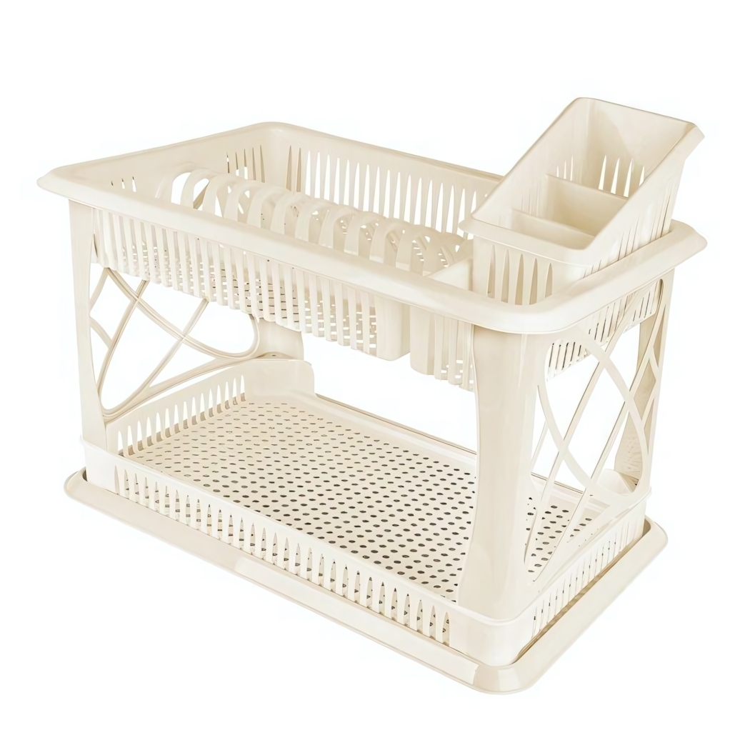 Сушилка для посуды «Plast Team» 2-ярусная с поддоном, 49х17,5х32,5 см, молочный, пищевой пластик