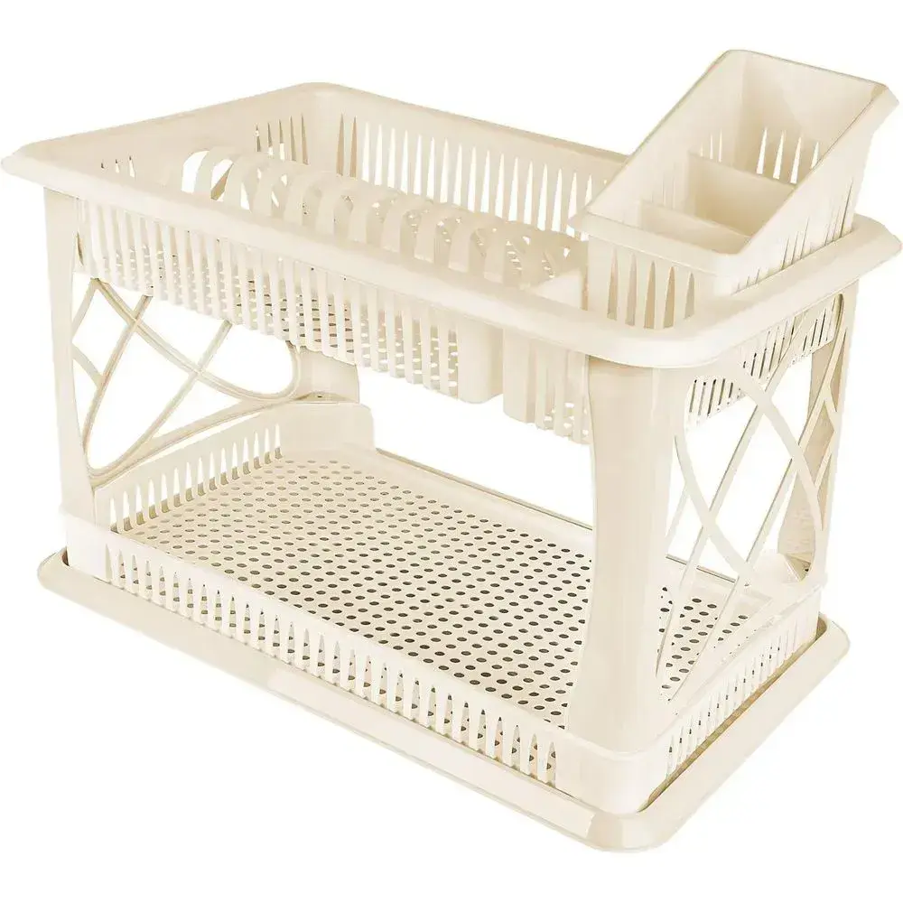 Сушилка для посуды Plast Team двухъярусная с поддоном, 490х325 мм, молочный туман