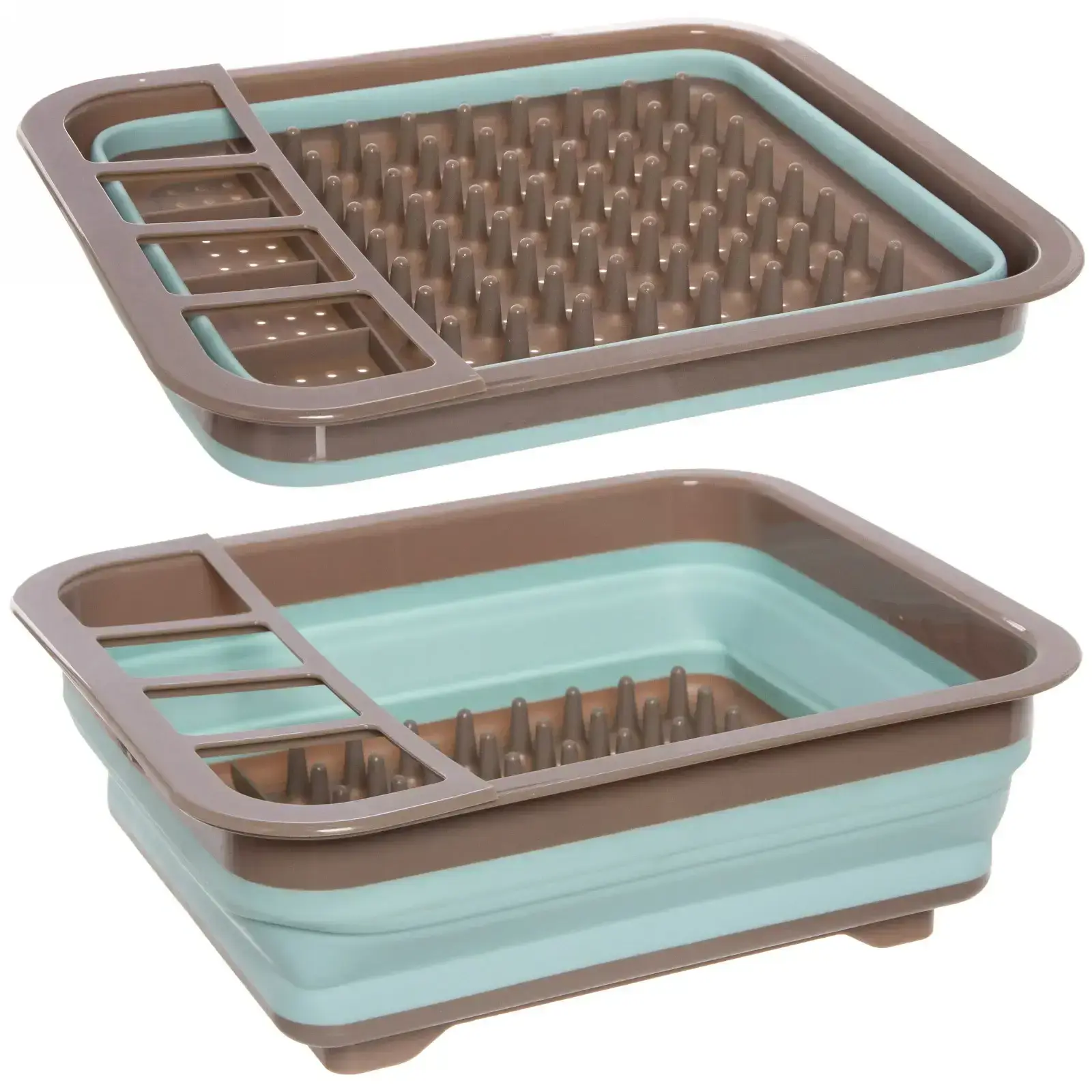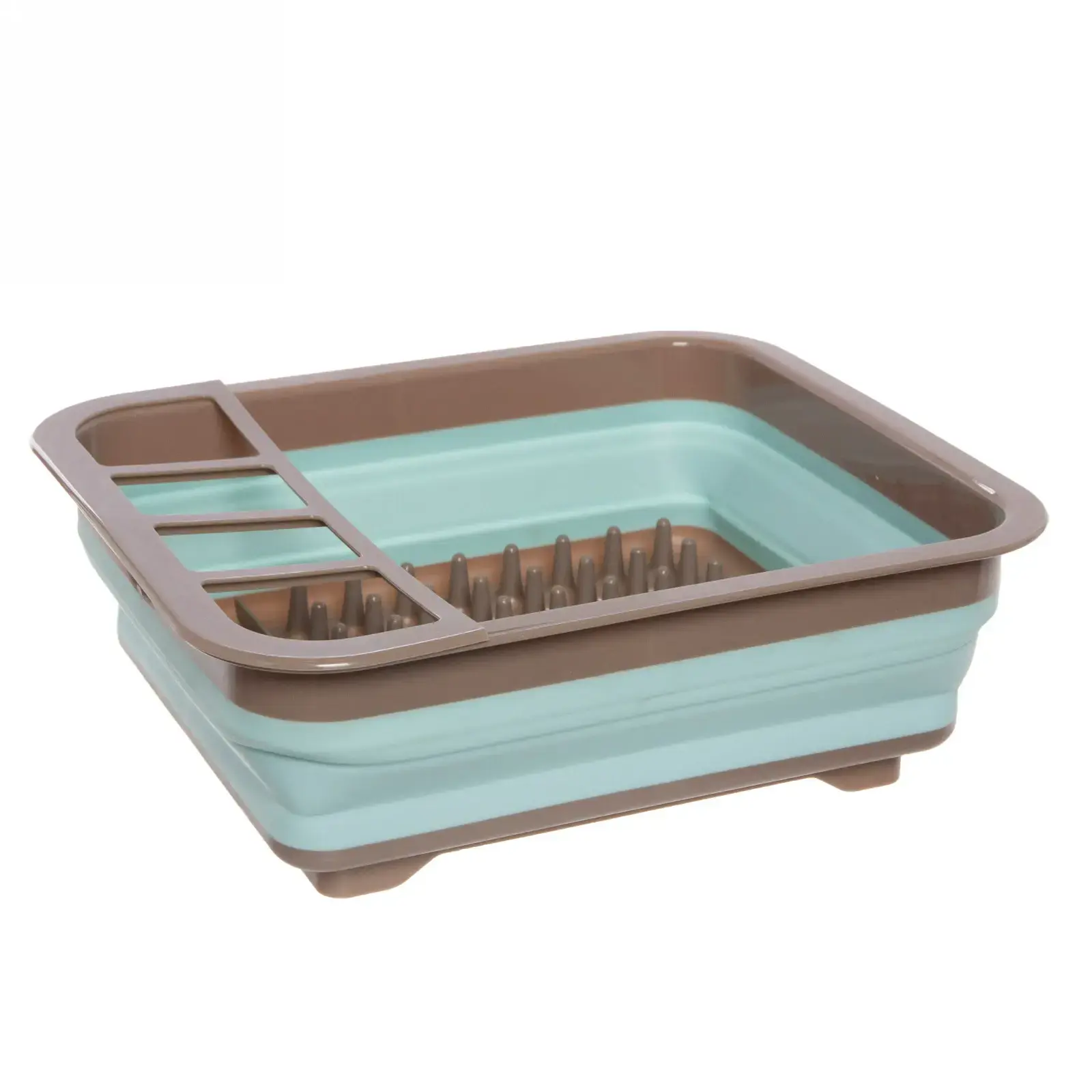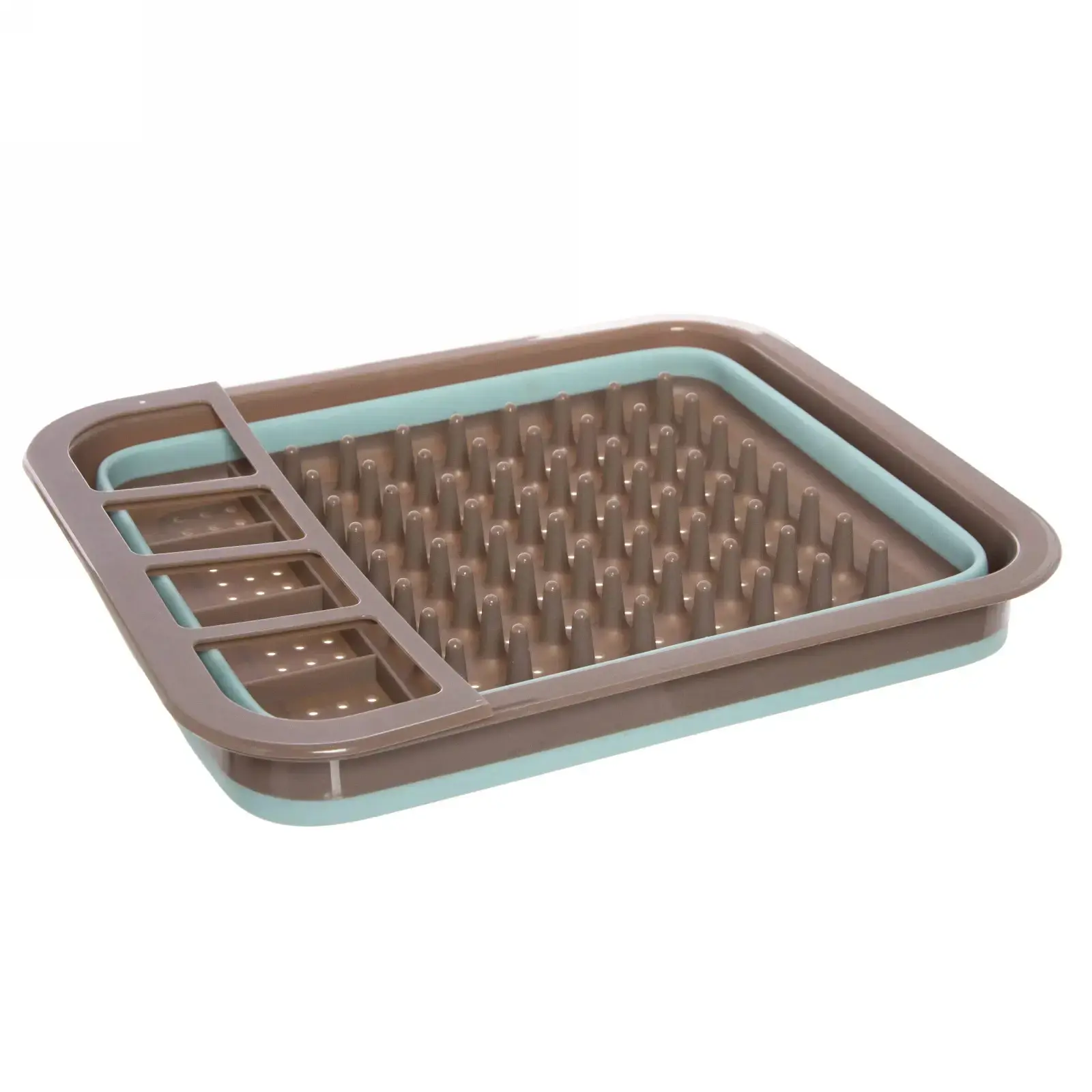 Сушилка для посуды «DANNY HOME» пластиковая, 36×30,5 см, кофейная/голубая, с поддоном и отделением для приборов