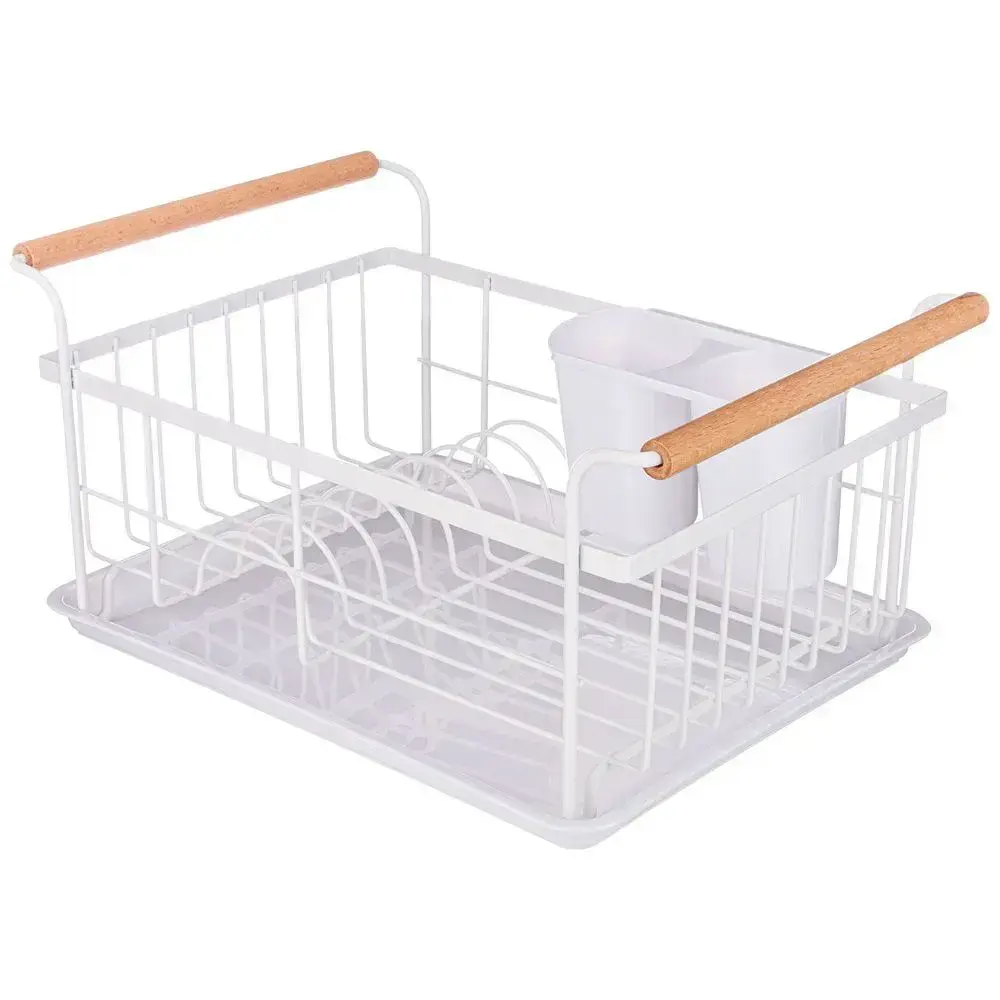 Сушилка для посуды практичная с деревянными ручками, белая, 36х26х16,5 см, пластик и металл
