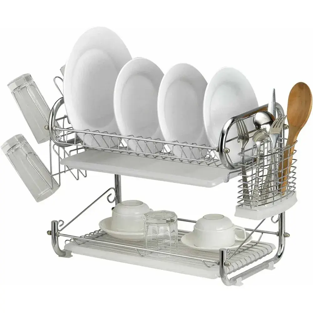 Эта практичная сушилка станет незаменимым помощником на вашей кухне. Благодаря двухуровневой конструкции она позволяет эффективно организовать пространство и высушить сразу большое количество посуды.