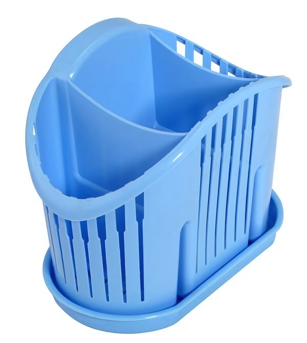 Эта сушилка предназначена для хранения и сушки столовых приборов. Она имеет два основных отсека, разделённых перегородкой, что позволяет удобно сортировать вилки, ложки и ножи. Сушилка выполнена из прочного пластика, что гарантирует её долговечность и лёгкость в уходе. Поддон внизу собирает излишки влаги, защищая поверхность стола от повреждений.