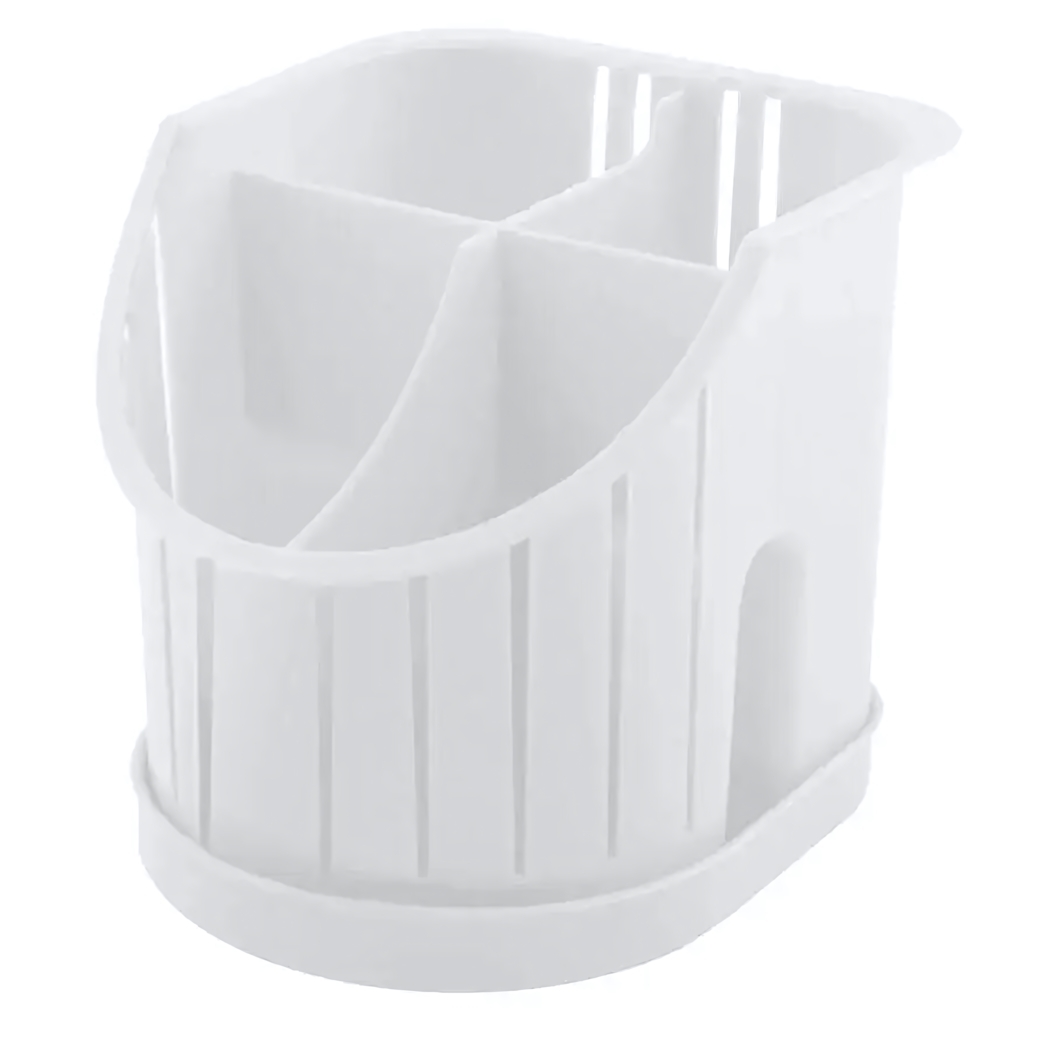 Сушилка «Verona» с 4 секциями обеспечивает гигиеничное хранение столовых приборов после мытья. Белый пластик гармонирует с любой кухонной мебелью, а продуманная конструкция экономит место на столешнице.