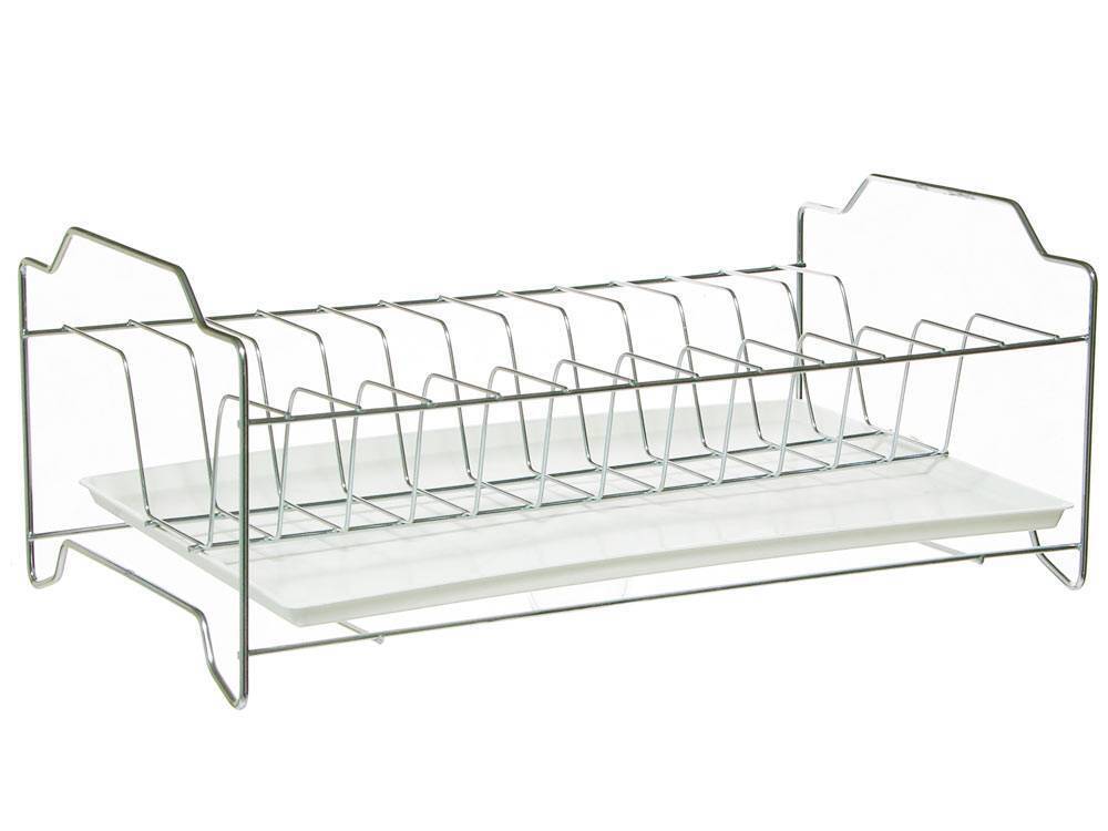 Сушилка имеет стандартные размеры, что делает её удобной для большинства кухонных столов. Конструкция состоит из двух боковых стенок и перекладин, что обеспечивает надежное размещение посуды. Гладкие линии и аккуратный внешний вид делают её не только практичной, но и стильной.