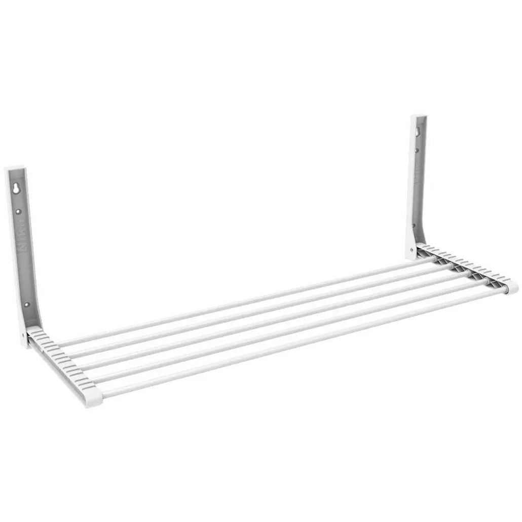 Длина конструкции — 80 см, что обеспечивает достаточно места для размещения белья. Металлические перекладины выдерживают вес сухого и влажного текстиля, а покрытие защищает от коррозии. Вертикальные крепёжные элементы имеют отверстия для надёжной фиксации. Отгружается один товар, цвет определяется как белый.